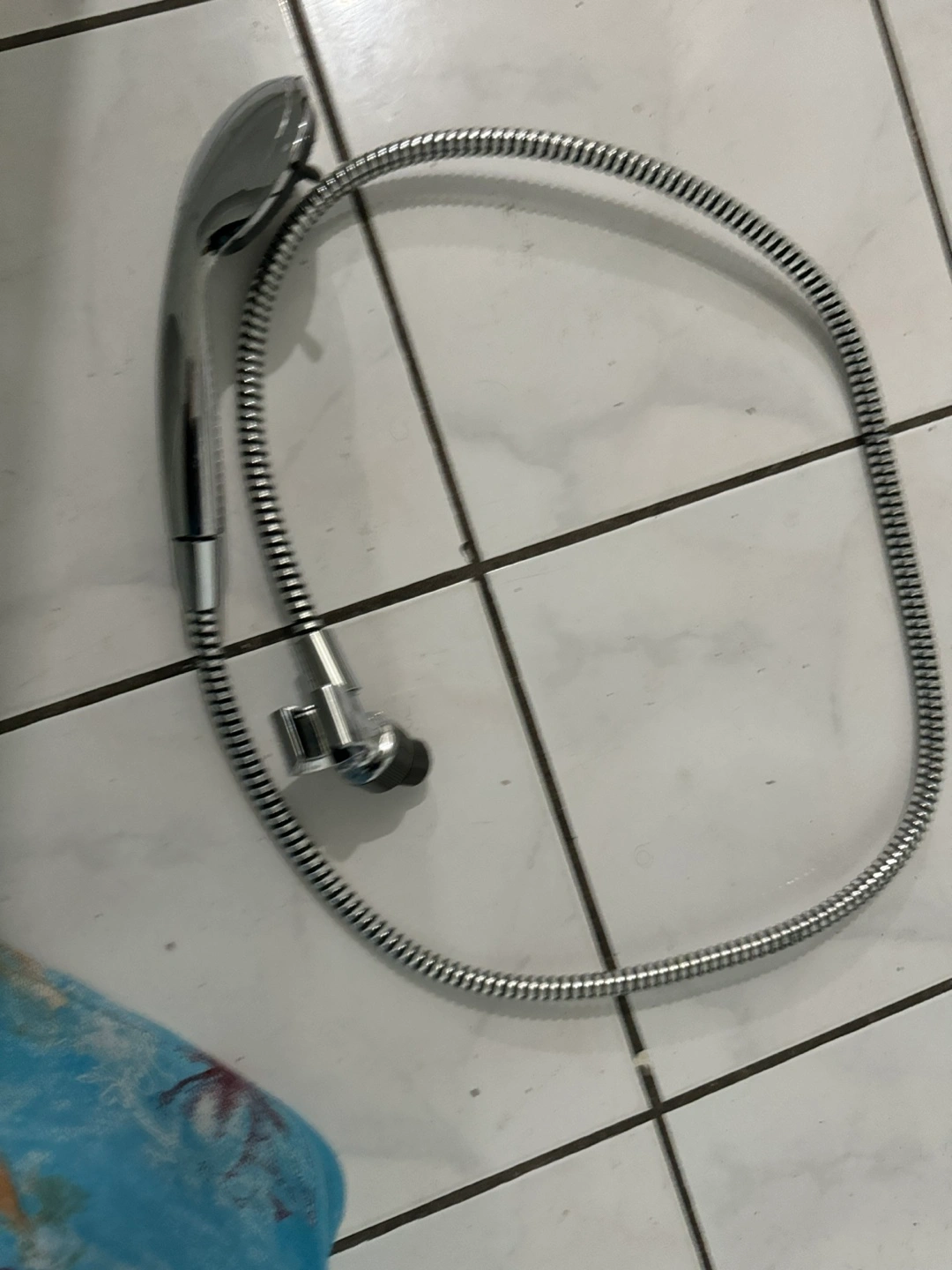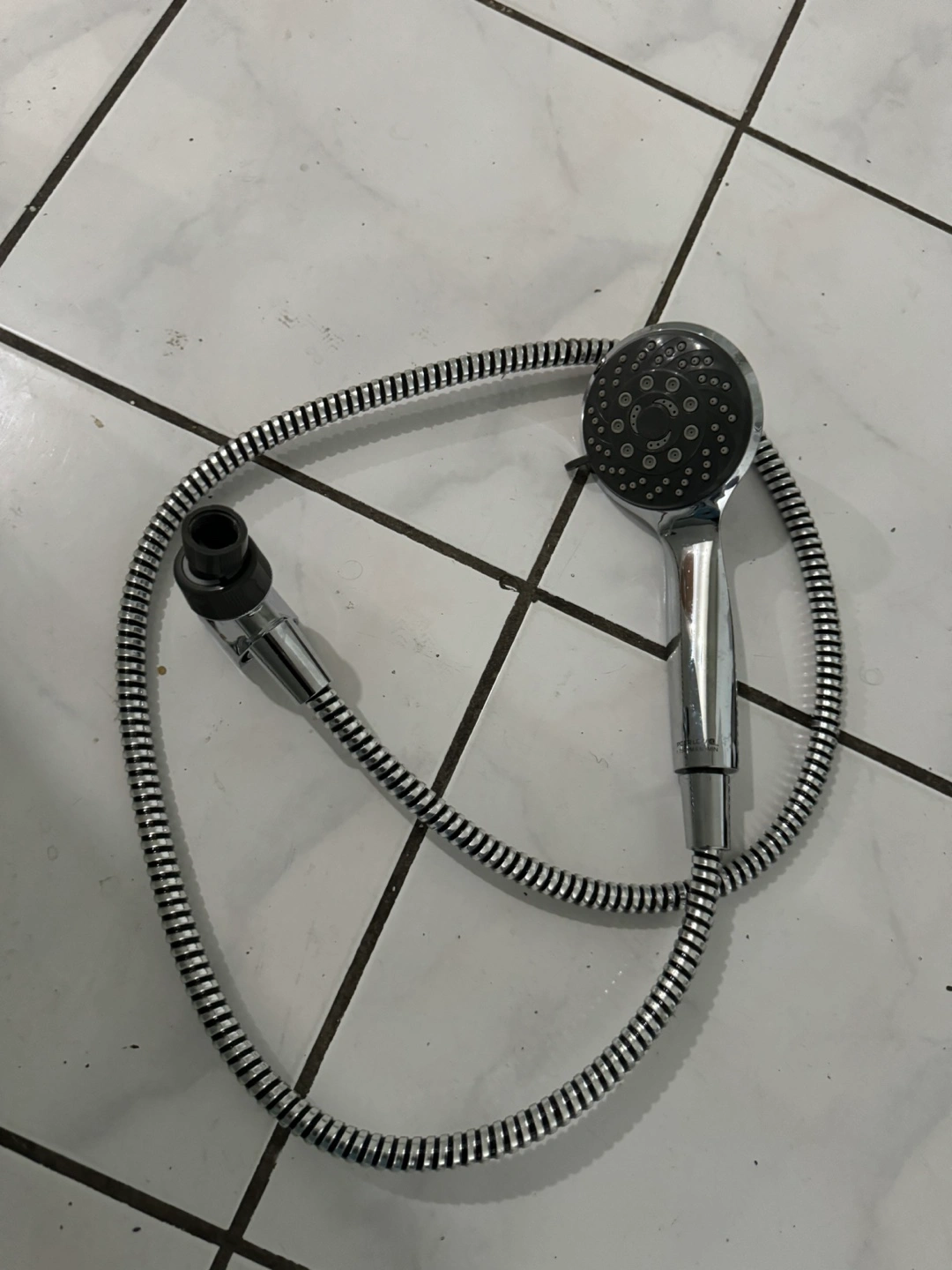 Chrome finish. Flexible metal hose. Standard fitting. Used, good condition.