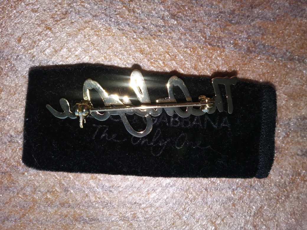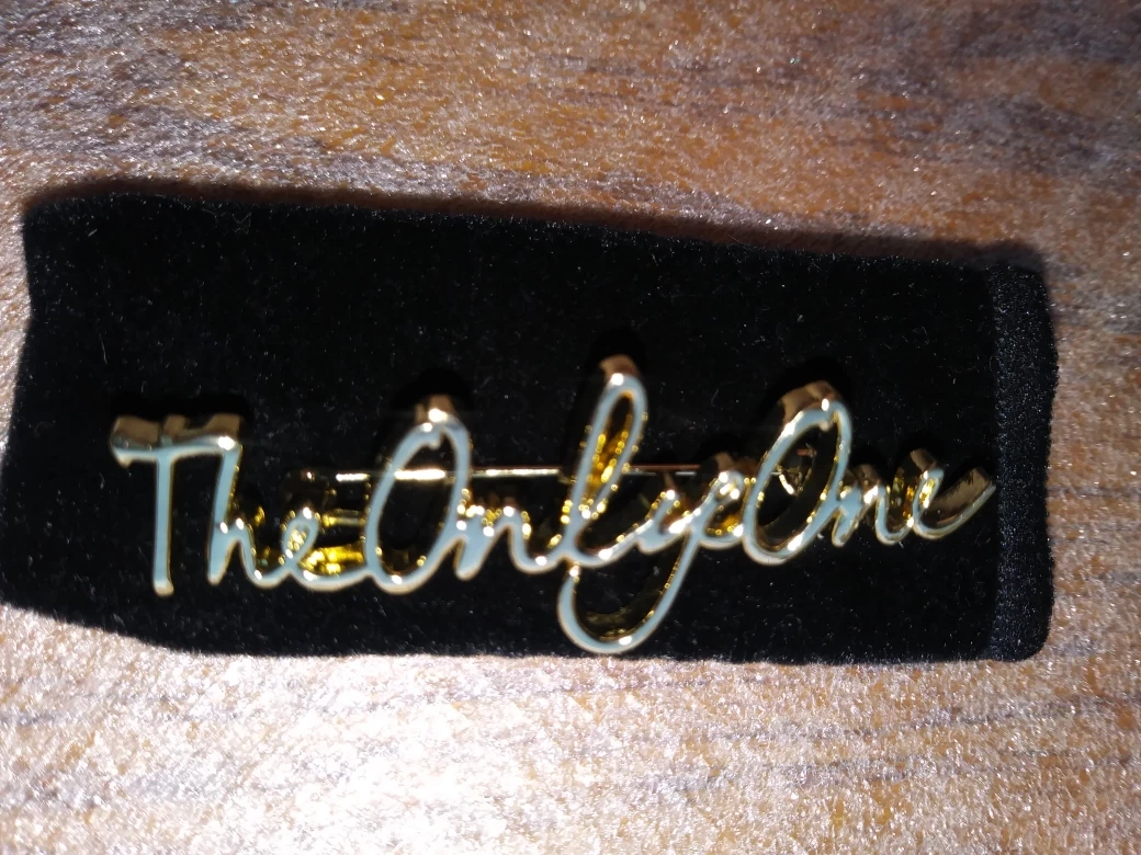 1000+Gold-tone brooch. Features The Only One script. Comes with a black velvet pouch.