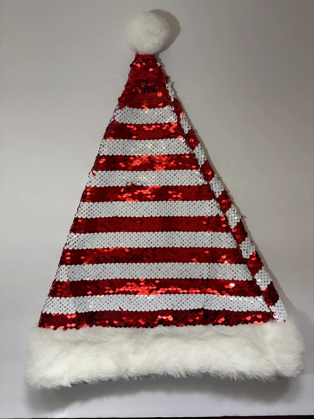 Can flip sequins up or down to get the desired pattern on the Santa hat. Either all stripes, all red, or a fun combination of both.