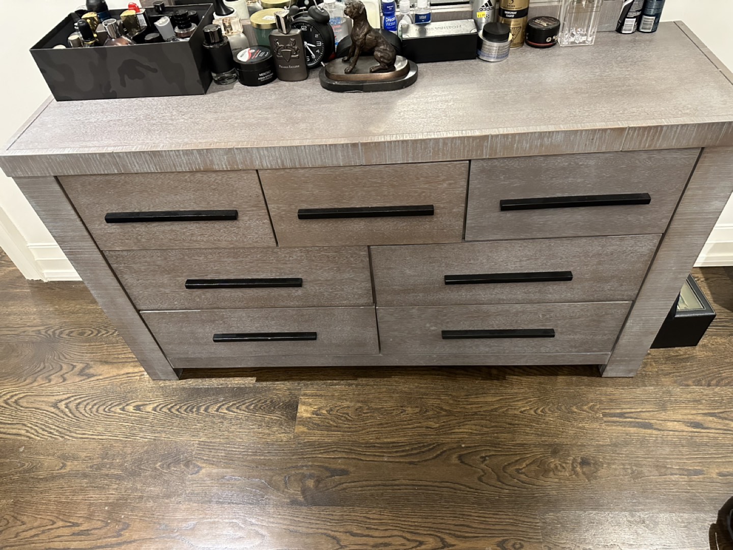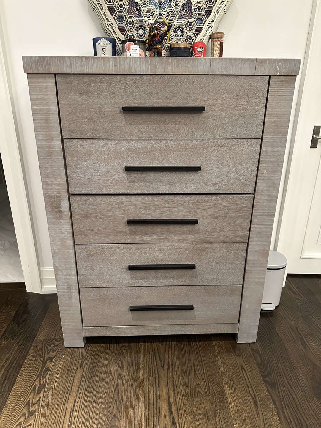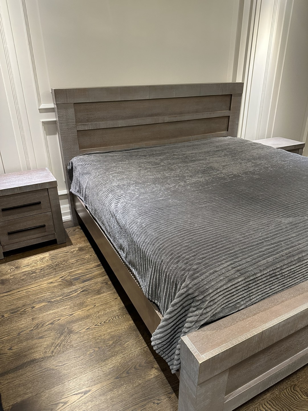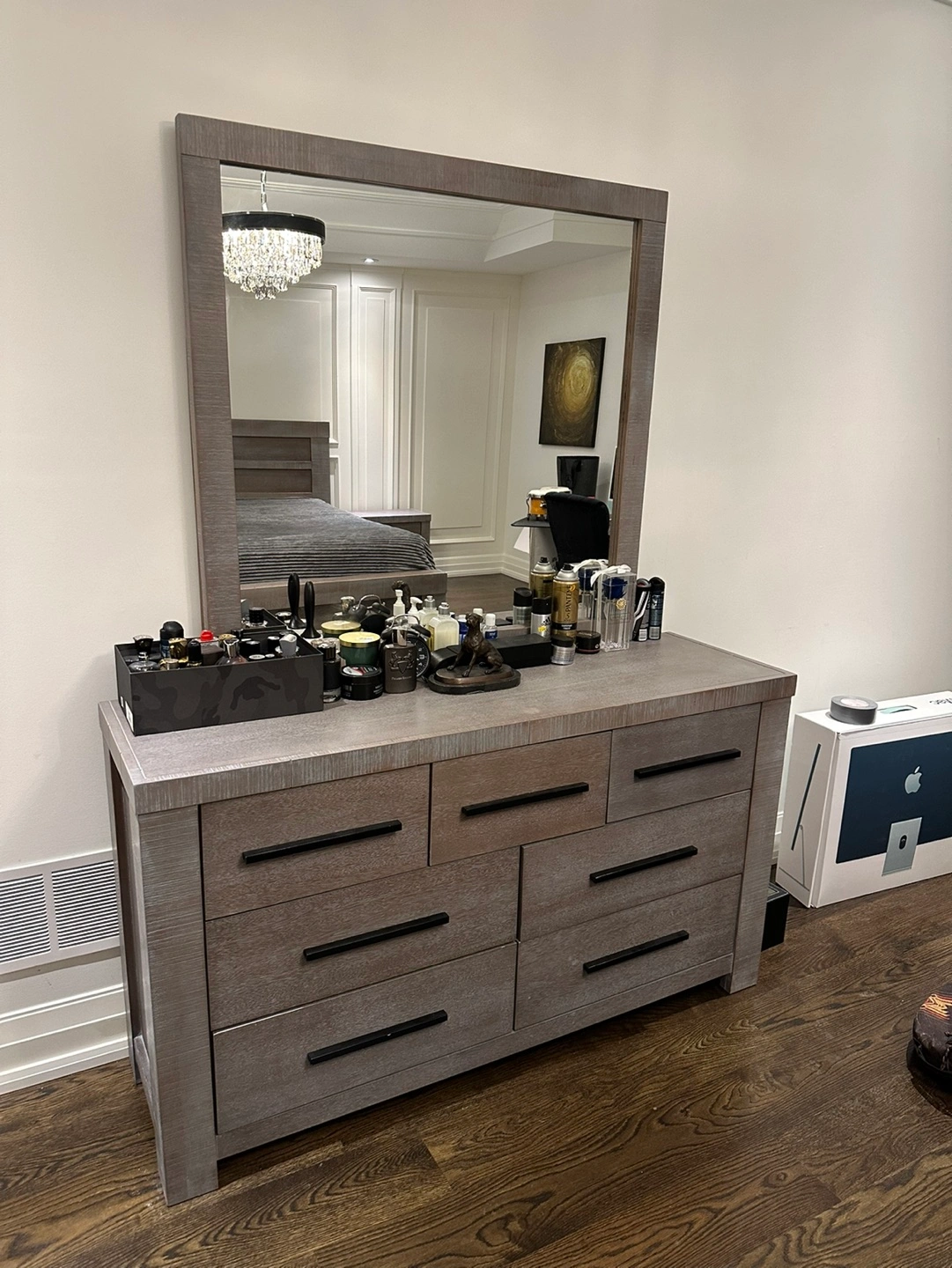 Full Bedroom Set, King Bed, 2 night tables, drawers and dresser with mirror.