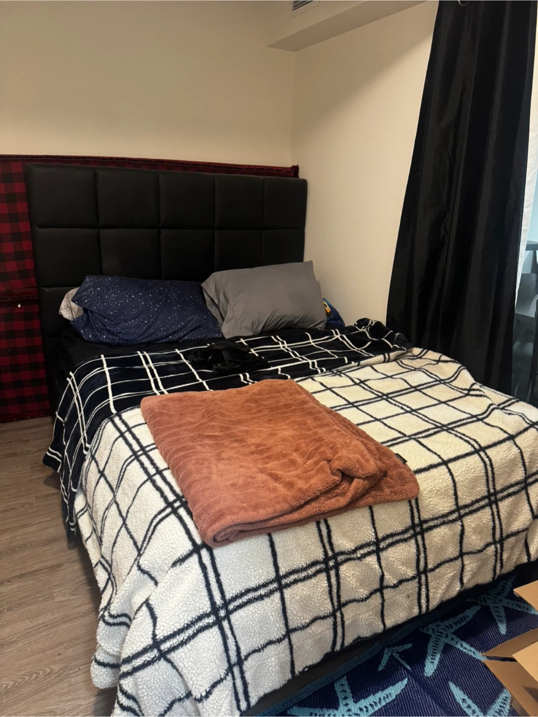 Selling a black bed. It's in good condition and would look great in any bedroom! The headboard has a modern design and will add a touch of elegance to your space