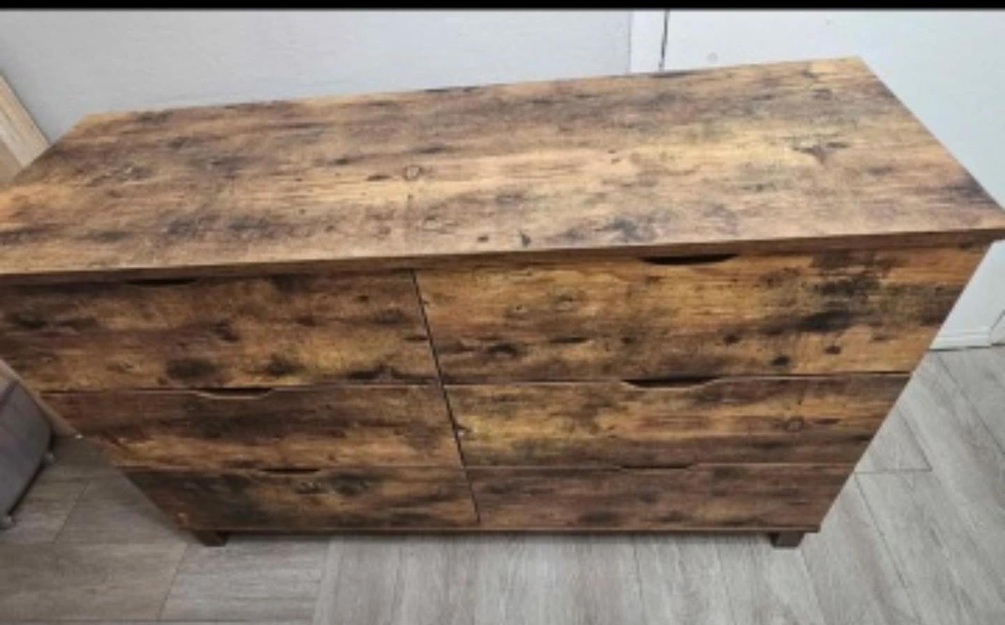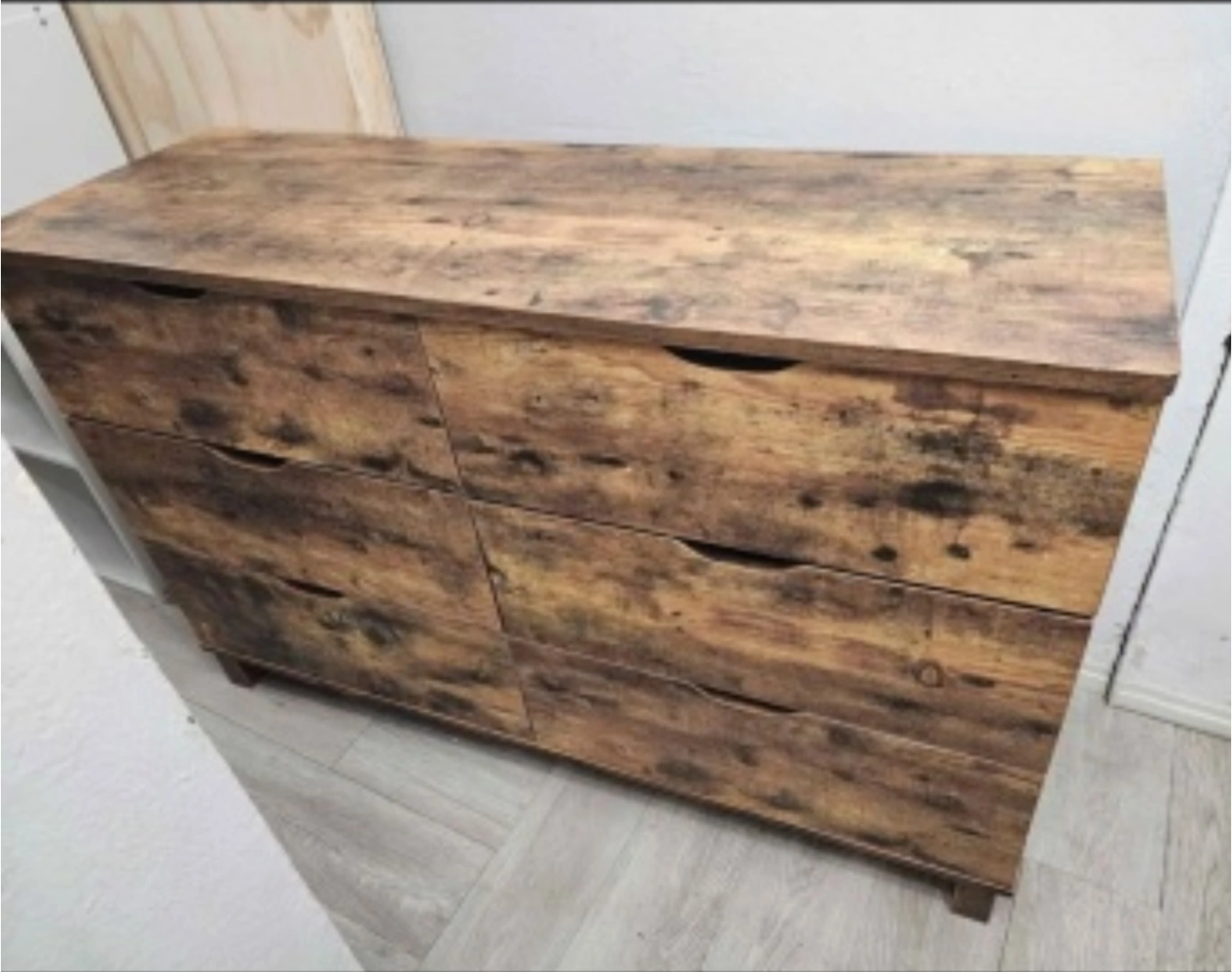Six-drawer dresser. Rustic brown wood finish. Modern style. Great storage. Public meet-up!