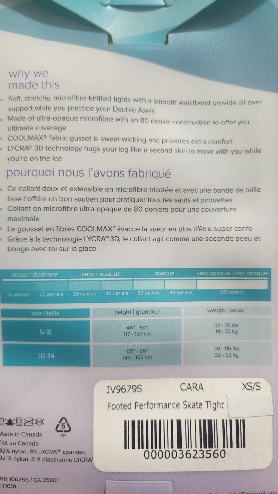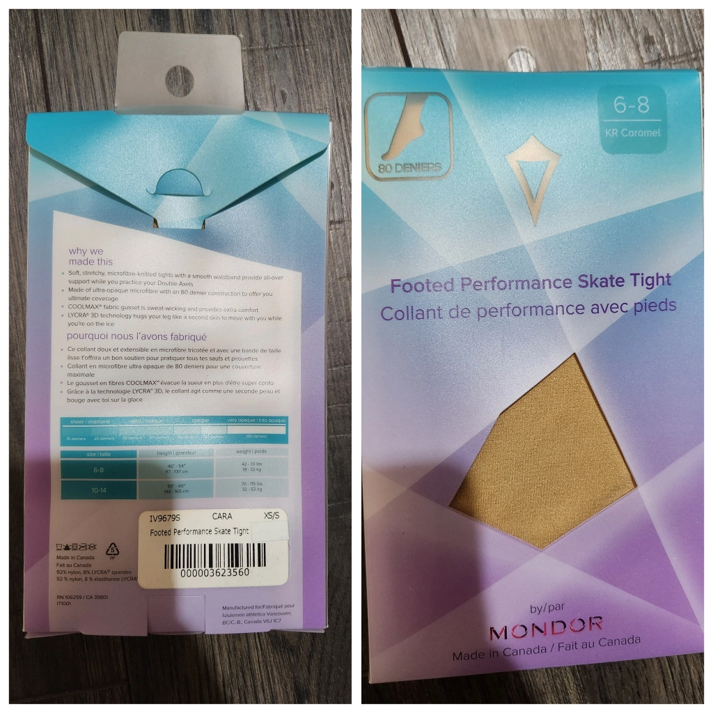 Brand new Mondor footed performance skate tights. Size XS/S. 80 denier.