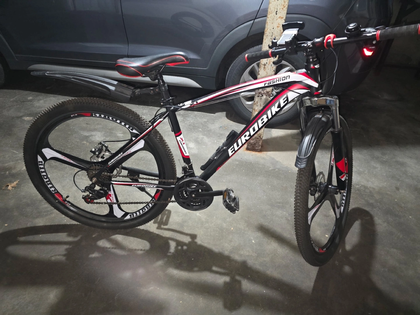Couple of months barely used. This bike equipped with 10 speed gear( 7speed rear + 3speed front ) system. Both front and rear wheels have mechanical disc brakes. Lever shifters both front and rear. Adjustable saddle. Negotiable! Bought it for 350$