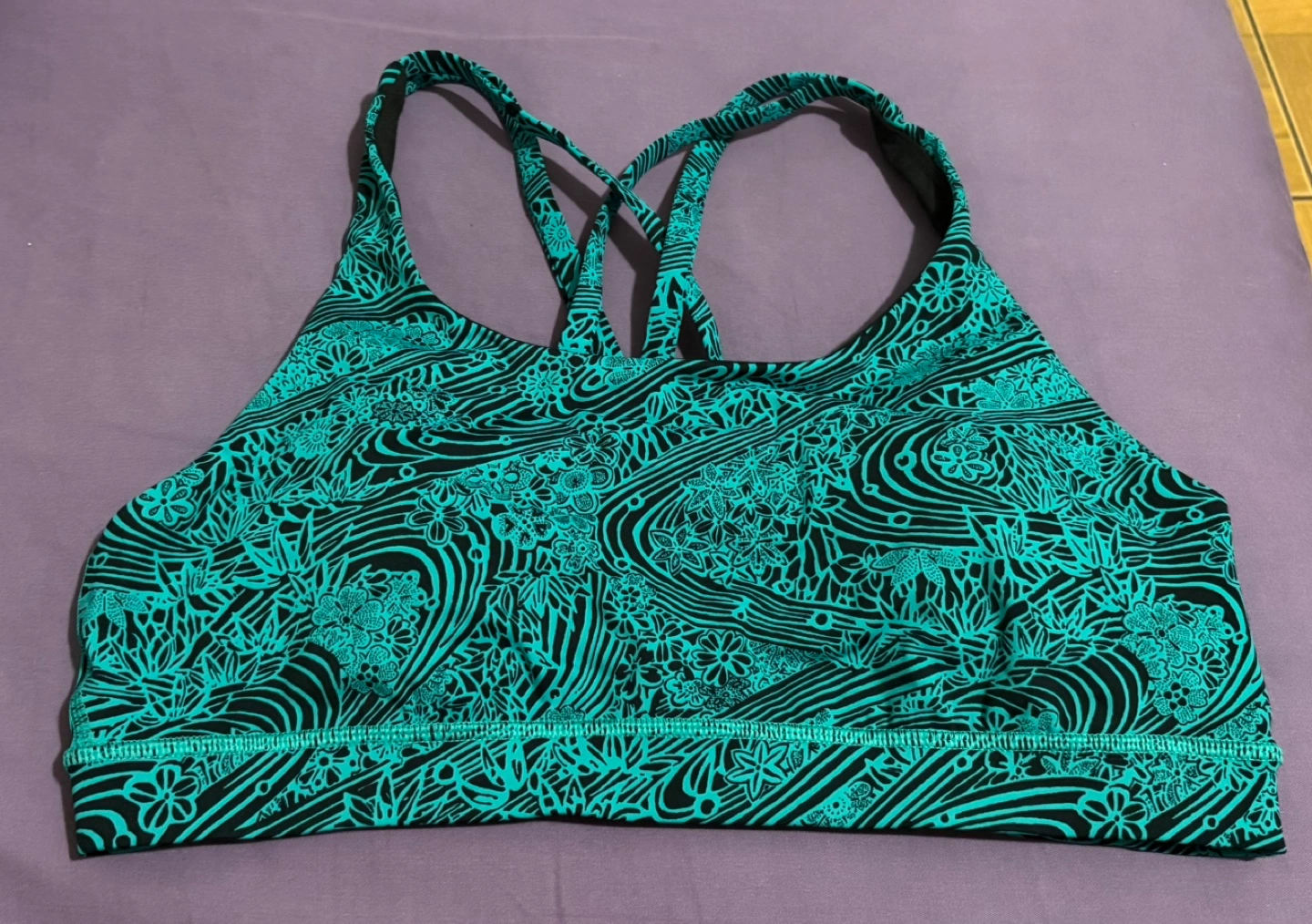 Lululemon Energy Bra NULUX Green Foliage -Size 10. Cross-back design.