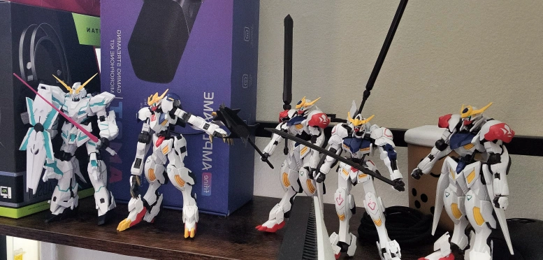 4 prebuilt Gundam Model figures. Includes various original accessories, and building manuals. Great for collectors or builders. Check pictures for specifics. DM if any questions. I'm taking cash only. Some prebuilt pieces come with their own boxes. I have orginal manuals for all of them.