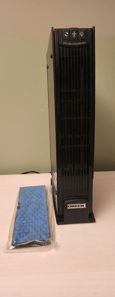 Pre-owned Oreck air purifier filter. New, never used. Hexagonal pattern. Packaged in plastic.