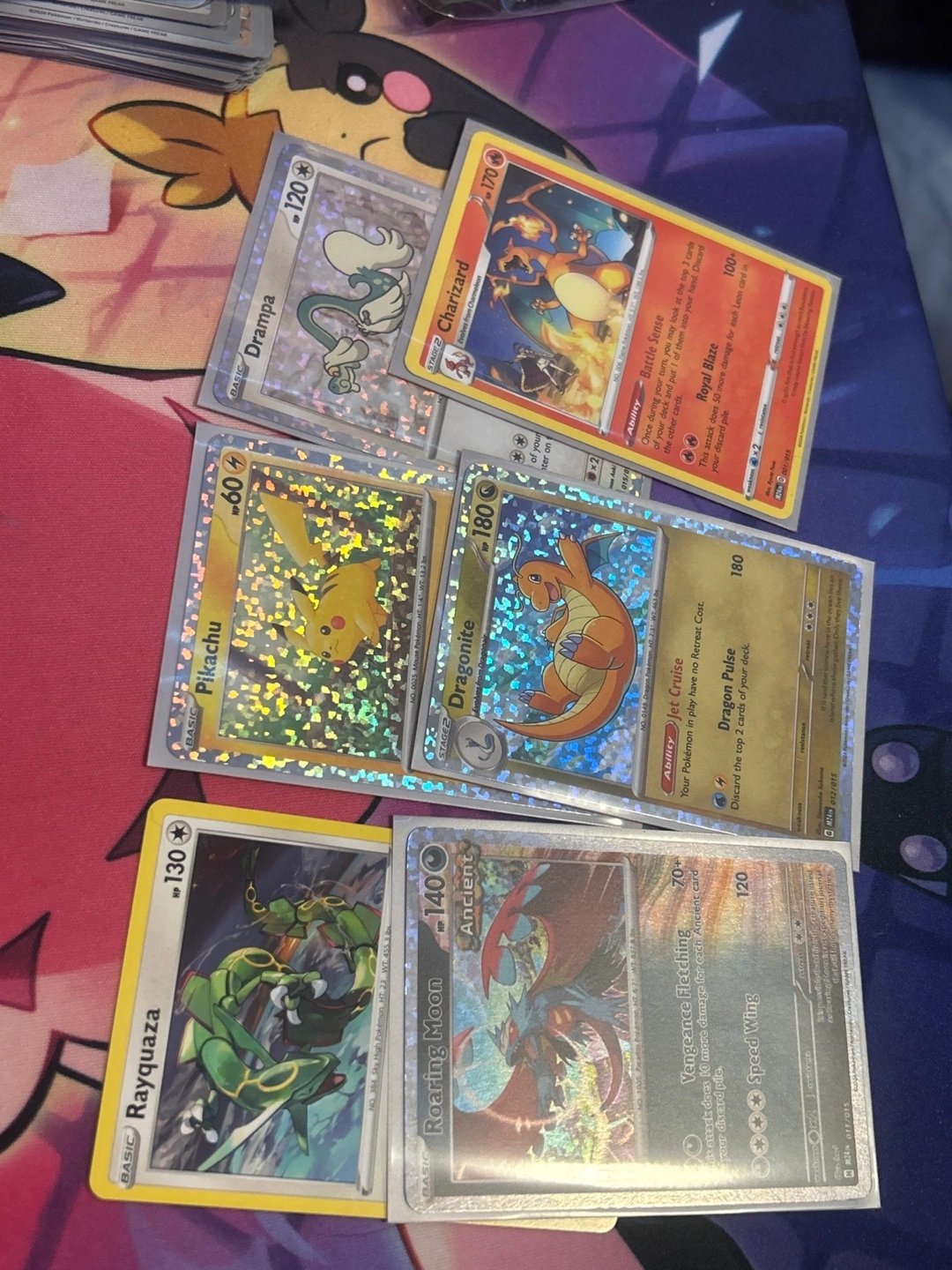 Collection of Pokémon cards. Includes holographic cards featuring Dragonite, Charizard, and more. Excellent condition. Perfect for collectors or players. Cards come with sleeves!