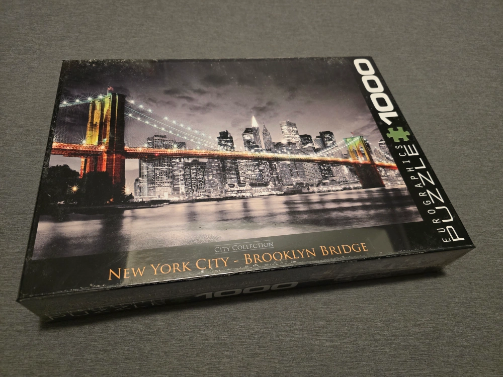 1000-piece jigsaw puzzle. City collection. Features the Brooklyn Bridge at night. New and unopened.