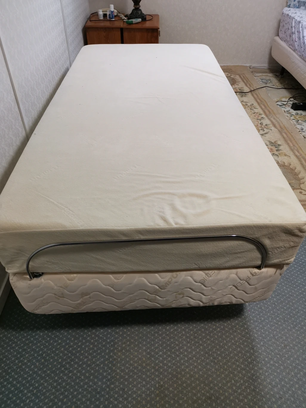 remote control adjustable base with TempurPedic single mattress.