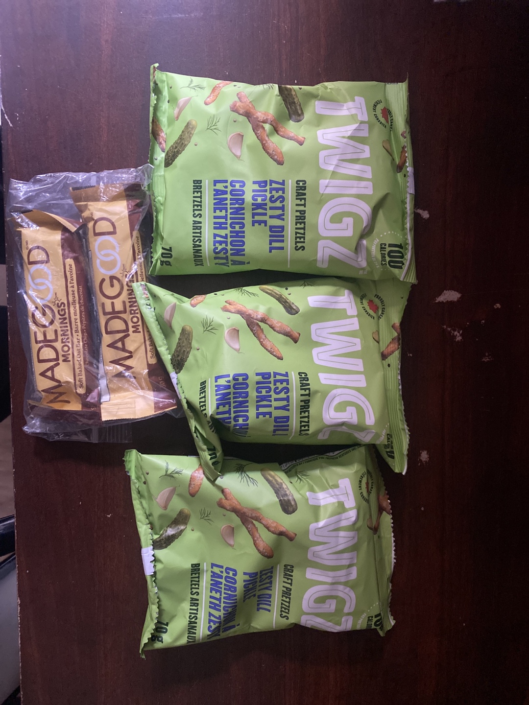 1 / 11 / 1Buy & SellSnacksSnacksFreeThree bags of Twigz Zesty Dill Pickle craft pretzels, 70g each. Two MadeGood soft baked oat bars, chocolate chip flavour.WHERE TO MEETCheck LocationView MapSELLERElizabethBirchmount27327 reviews1 chats·0 favorites·45 viewsSEND CHAT TO SELLERHi Elizabeth! I’m interested in your listing.Hi Elizabeth! I’m interested in your listing.Get the Karrot app to chatSign In to chat