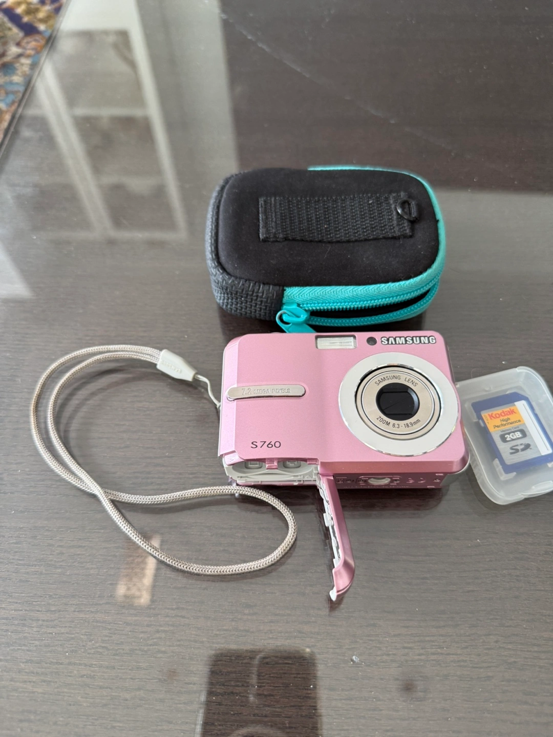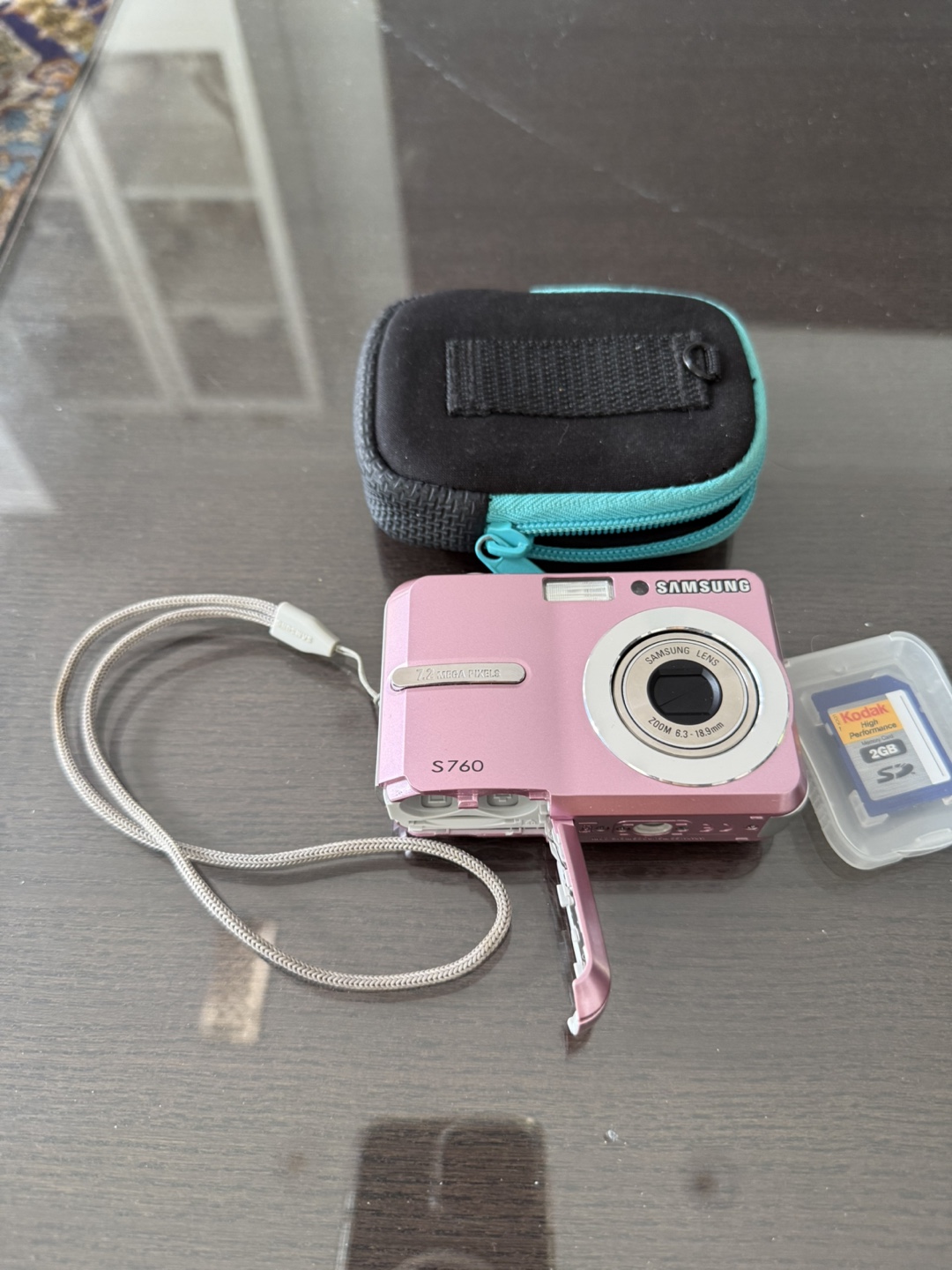 Pink Samsung S760 digital camera. Includes carrying case and 2GB Kodak memory card. Compact and easy to use. Great for everyday snapshots. Pickup location is Yonge and Steeles
