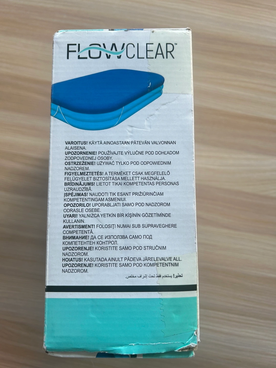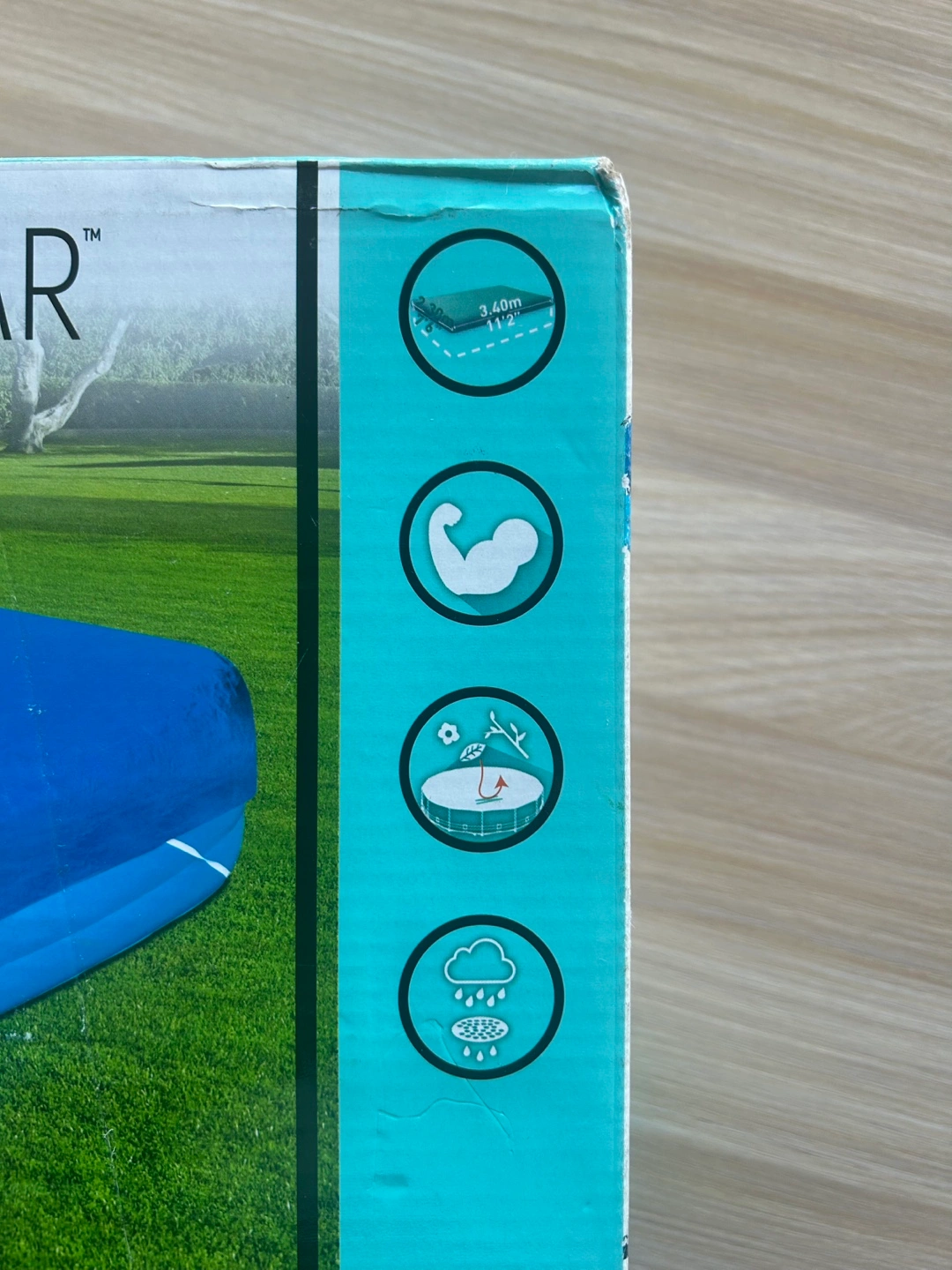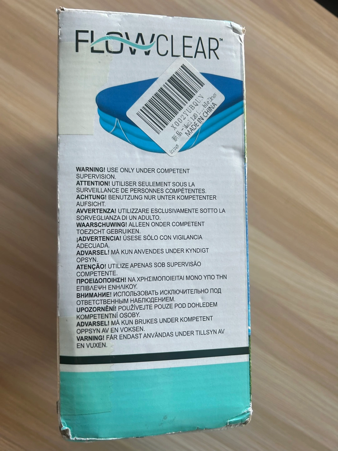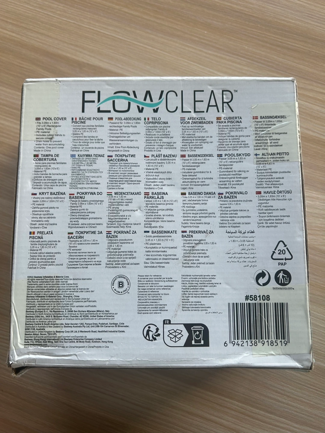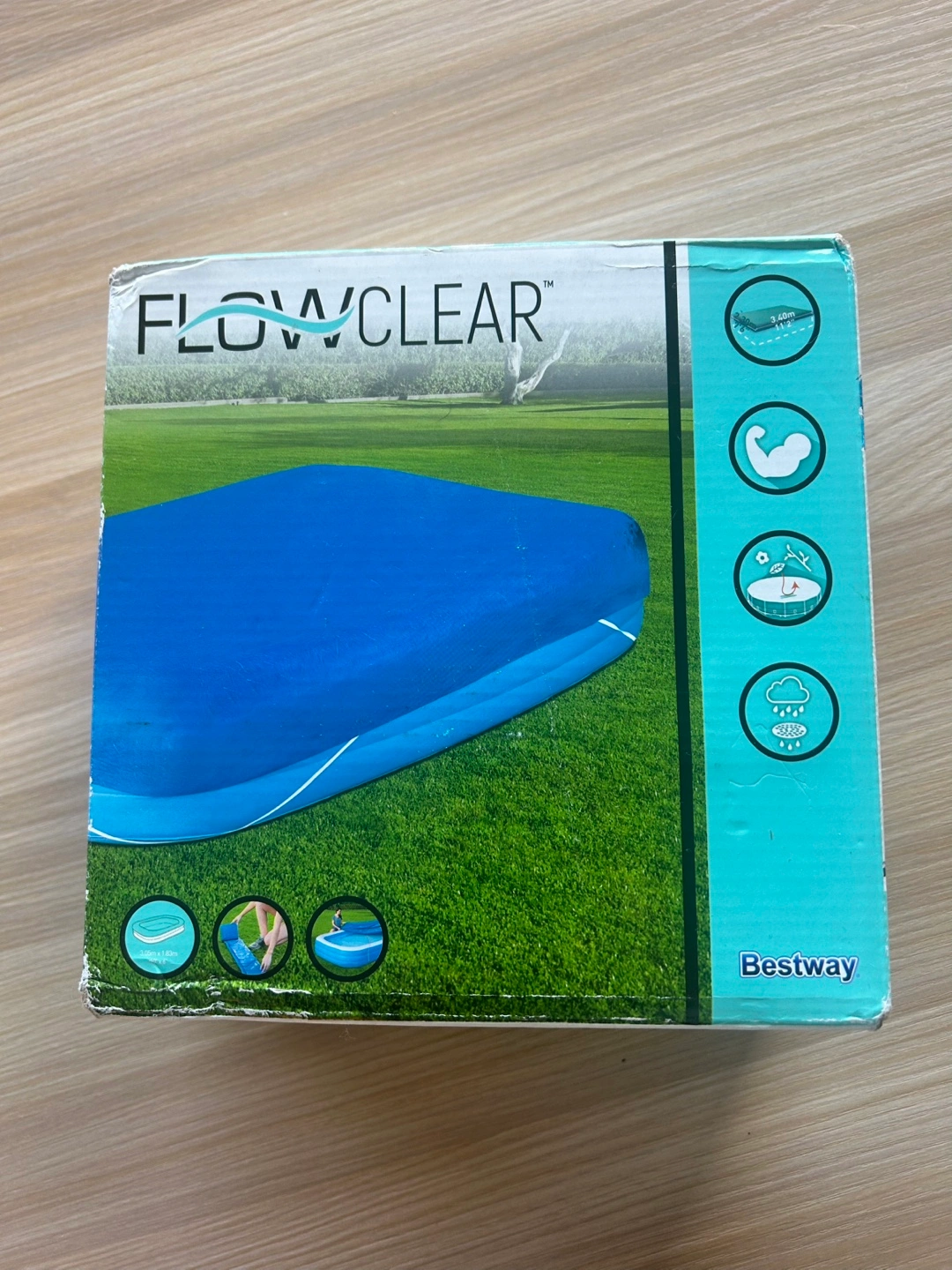 New in box. Pool cover for above ground pools. Size: 3.66m. Flowclear branding.
