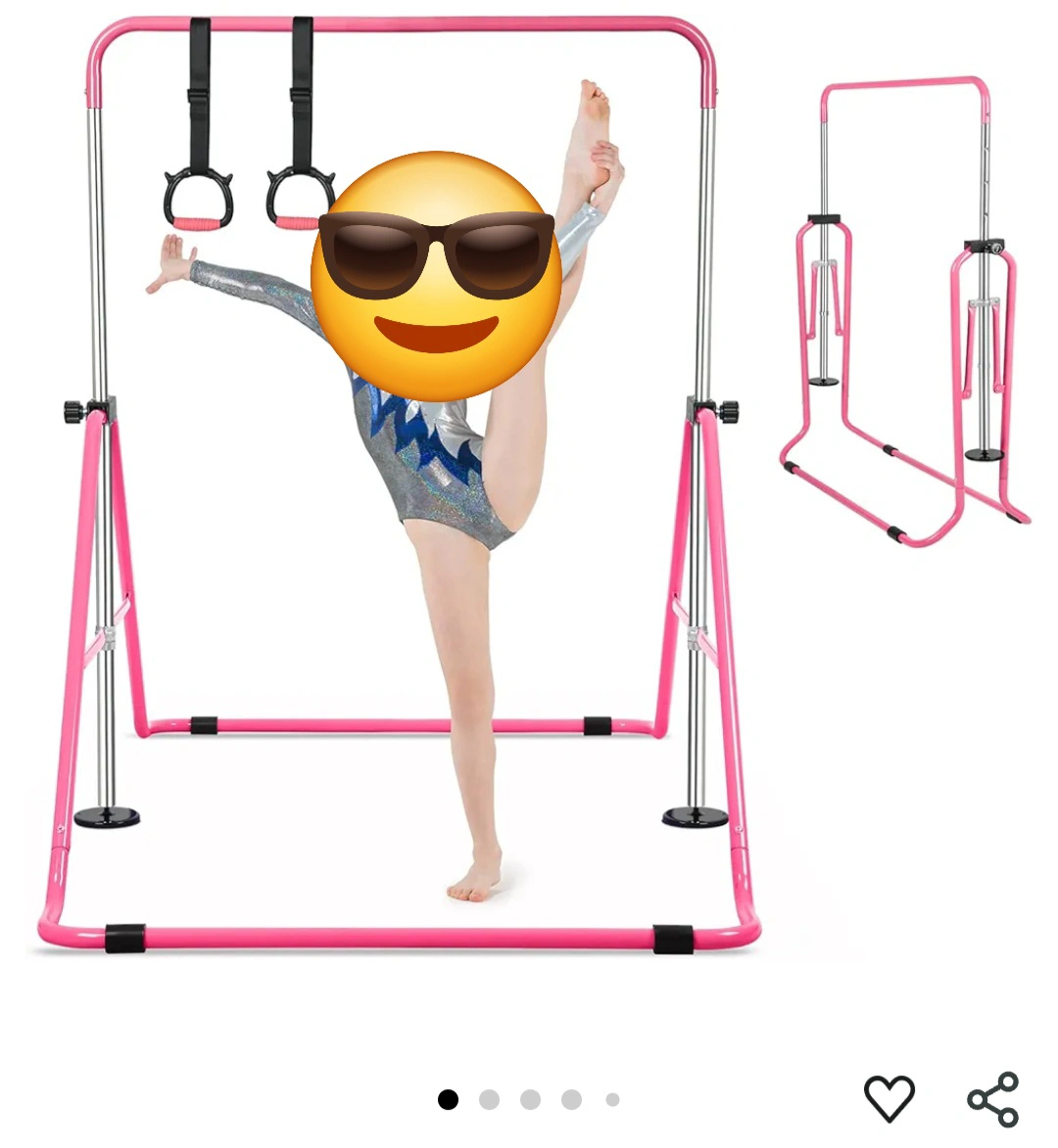 Foldable gymnastics bar. Pink metal frame. Great for home use, and portable.