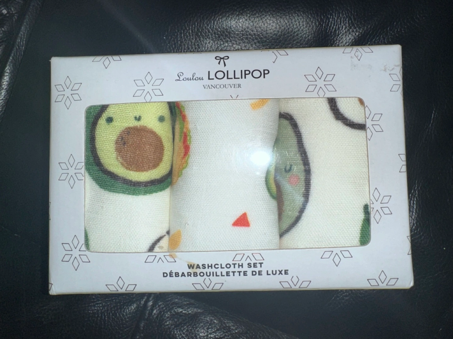 New in box from snuggle bugz. Three adorable avocado washcloths. Luxurious and soft. Perfect baby shower gift.