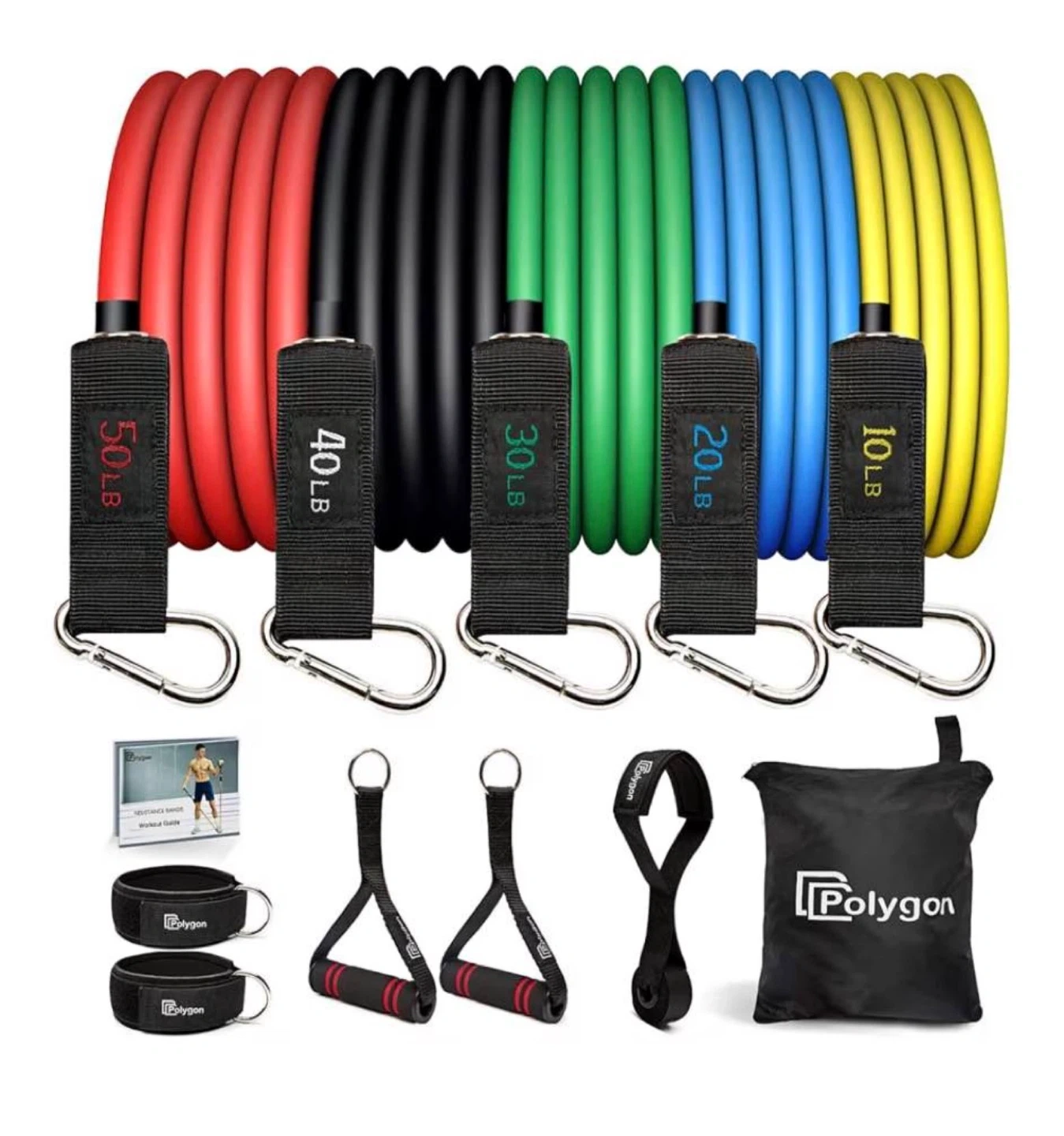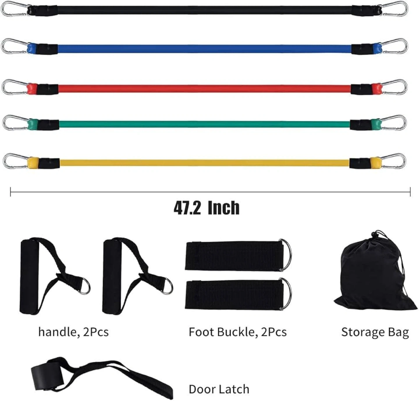 Resistance Bands - 11 Pc Resistance Bands Set, 150 LBS Stackable Workout Bands for Strength Training, Yoga, Pilates, and Full Body Workout, Includes Door Anchor, Handles, Ankle Straps, Carrying Bag