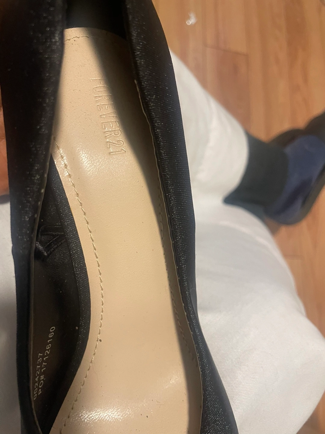 Pair of black pointed-toe high heels. Sleek design. Good for evenings out.