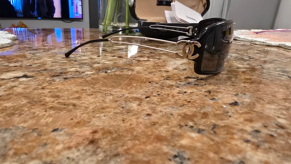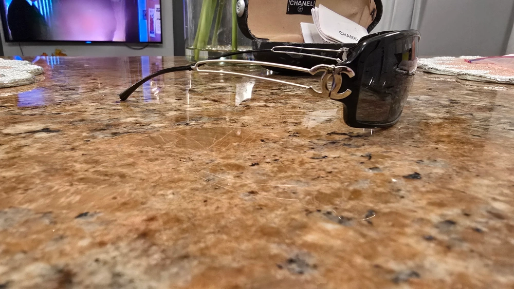 Chanel sunglasses, black frames, silver accents. Model 5038, A20891. Includes original case and paperwork. Purchased 19.11.02. these go for $400-500 anywhere else