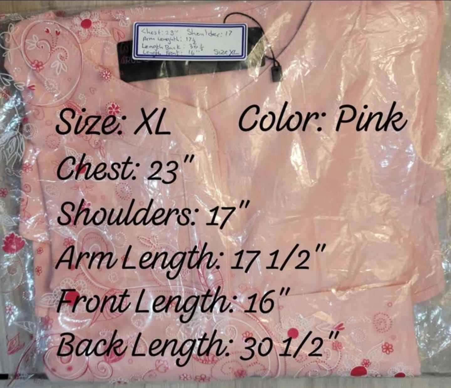 Lightweight pink blouse. Three-quarter sleeves. Button-down front. High-low hem. Size XL. Measurements included in photos.