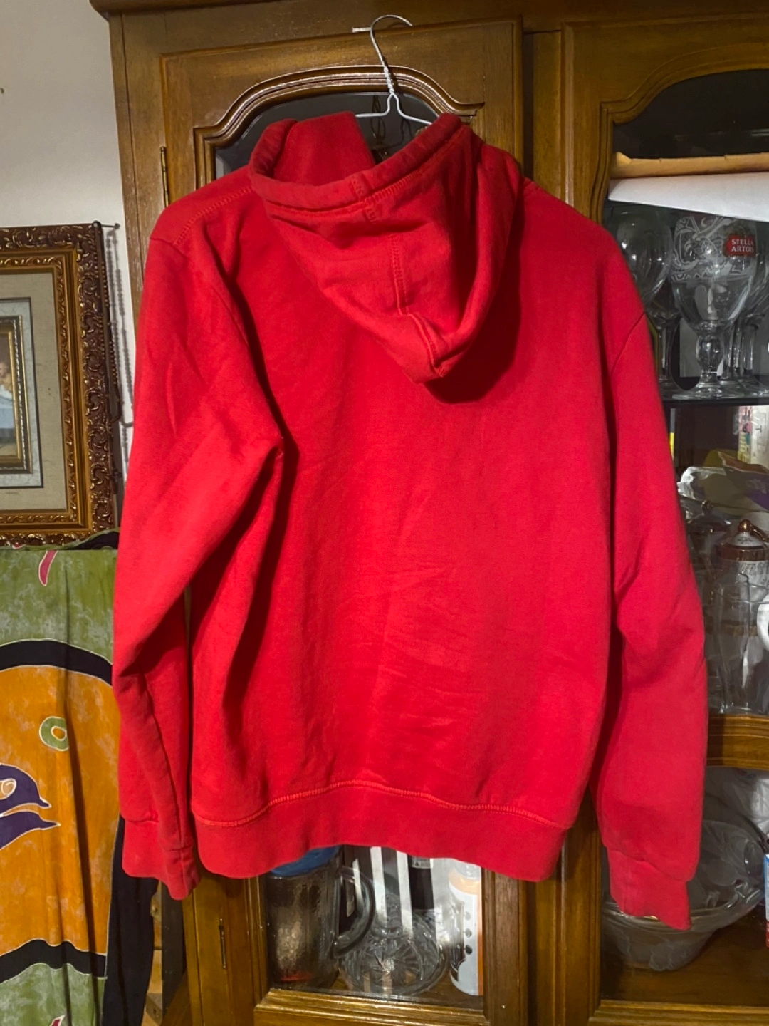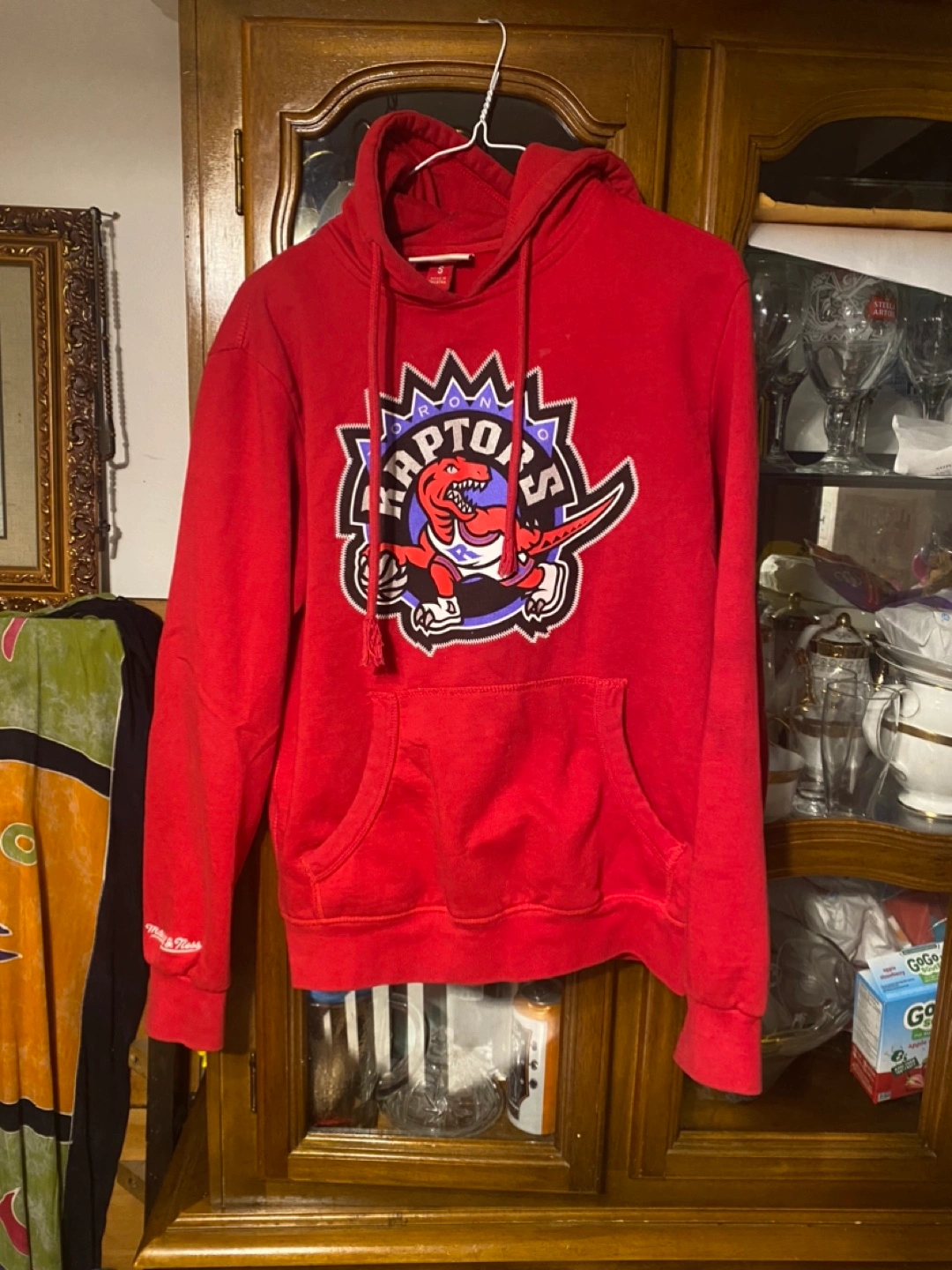 Men's red Toronto Raptors hoodie. Features a large Raptors logo on the front. Long sleeves, kangaroo pocket. Great for showing your team spirit.
