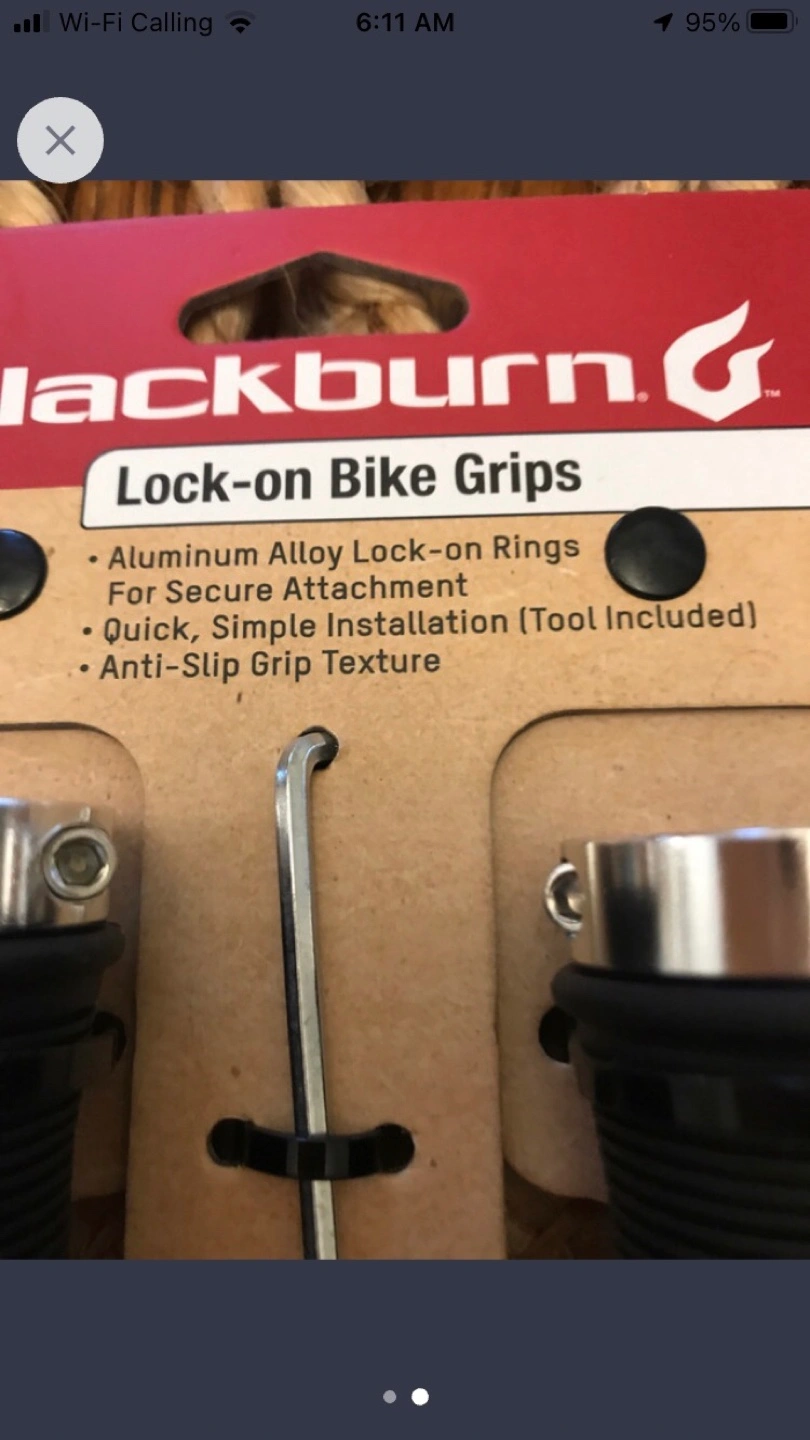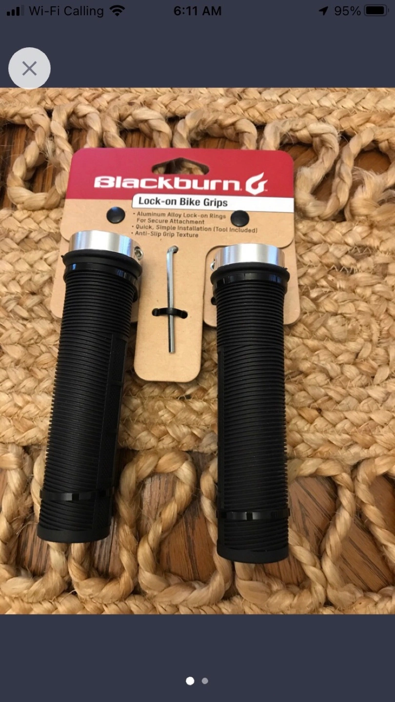 Aluminum alloy lock-on rings. Secure attachment. Quick, simple installation. Tool included. Anti-slip grip texture. New, unused.