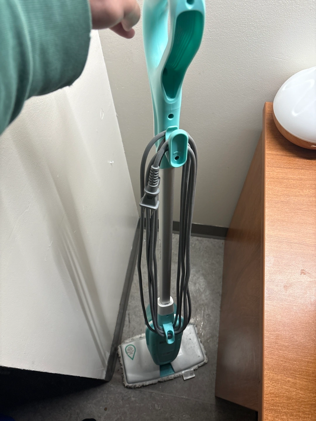 Lightly used steam mop. Great for cleaning hard floors. Includes cord and cleaning pad. Mint and white colours. urgent need to sell please !!