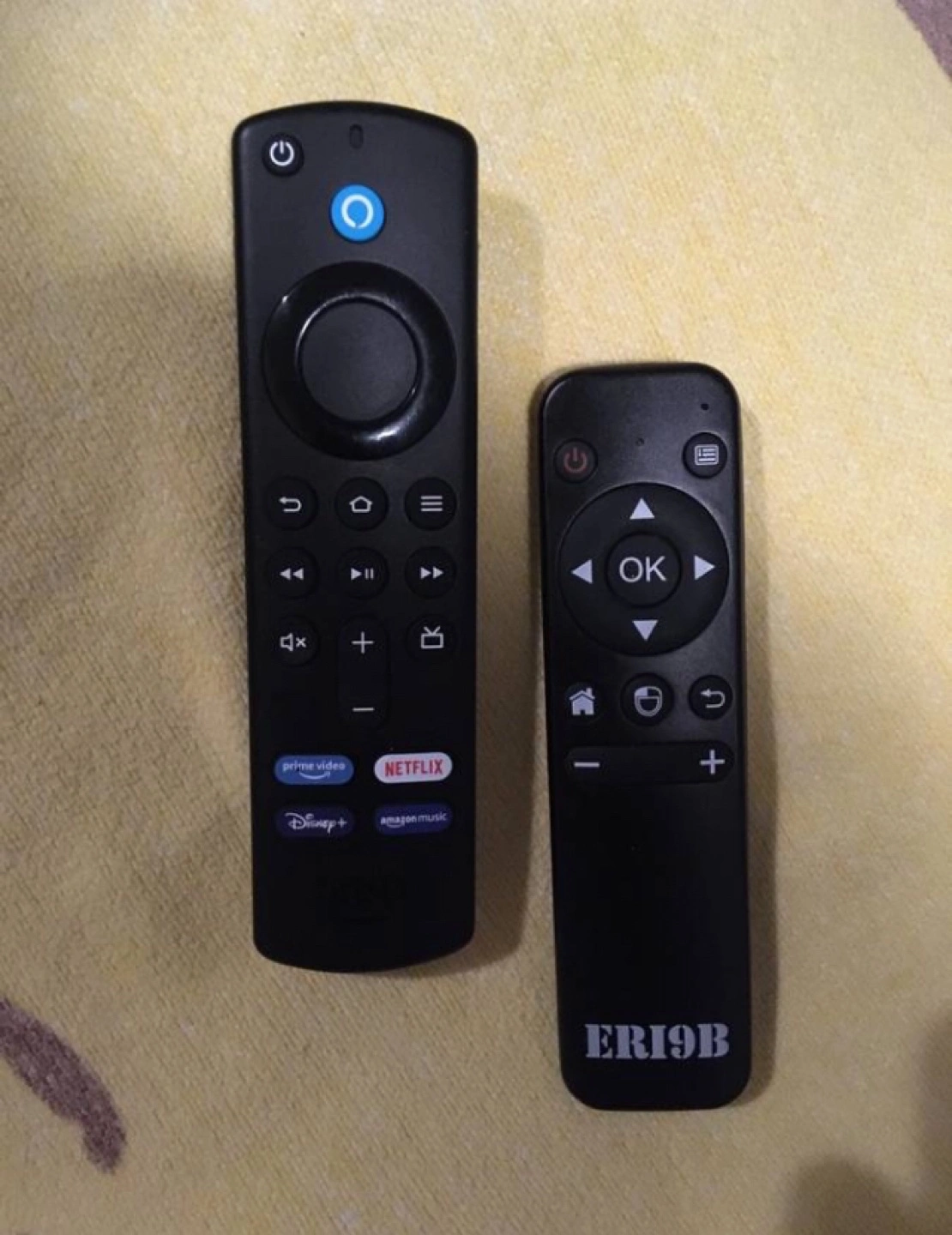 Set of two black remotes. One features Netflix, Prime Video, Disney+, and Amazon Music buttons. The other is a more basic remote with volume and channel controls. Both are in very good condition. $5 each remote, no Lowballers please…..