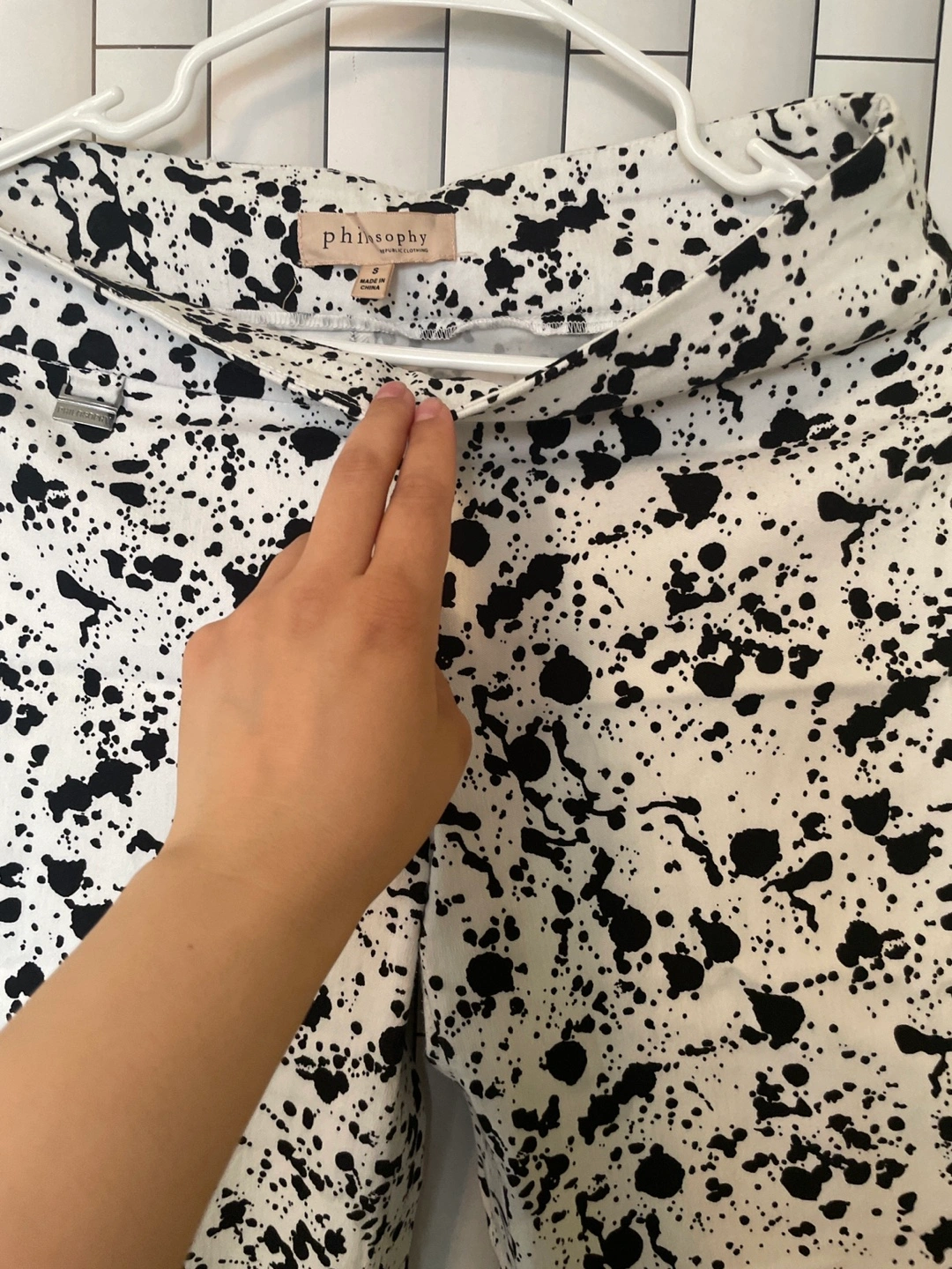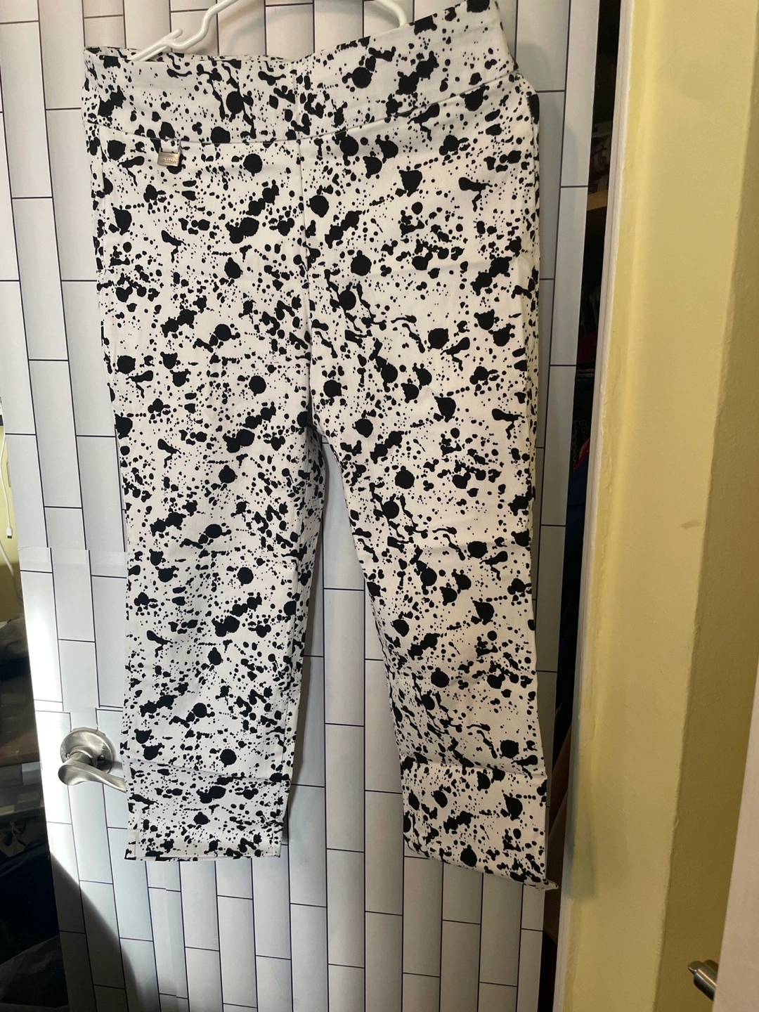 Women's cropped pants. Black and white splatter print. Size S. Pull-on style. Elastic material. Very good condition gentle wear only a few times.