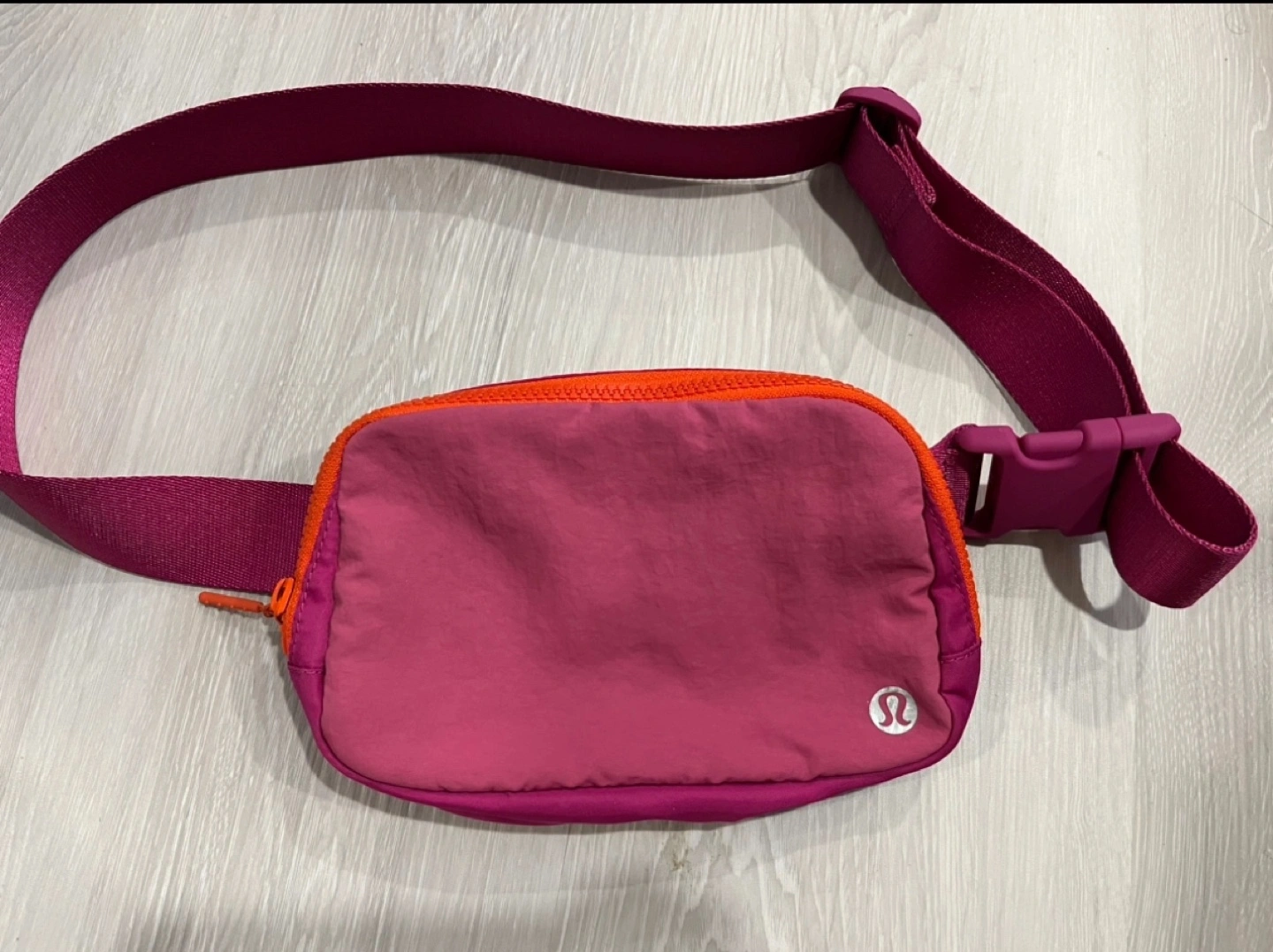 Most popular Lululemon Belt Bag in vibrant pink and orange colour.