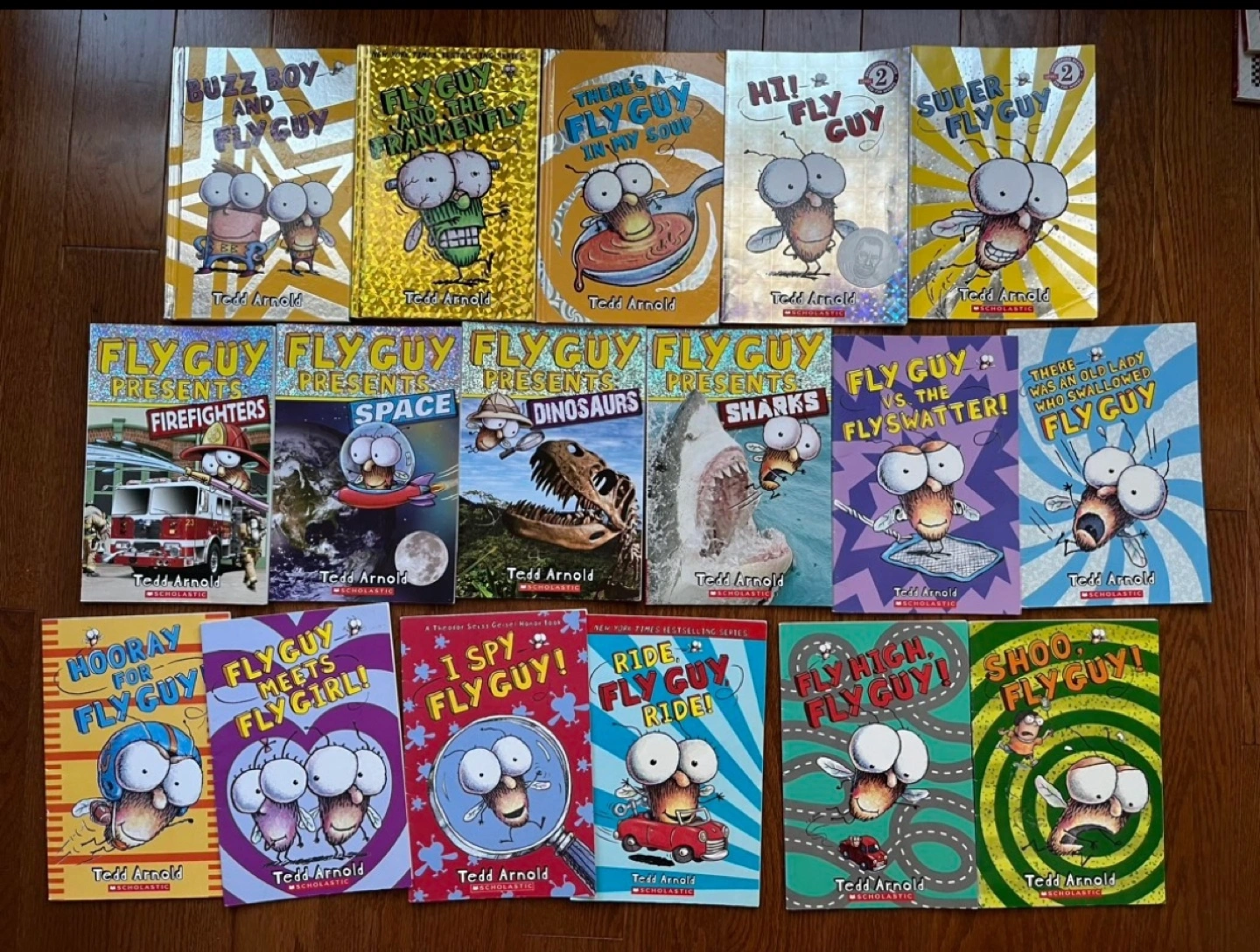 Collection of 17 Fly Guy books by Tedd Arnold. Includes various titles from the main series and the Fly Guy Presents series. Great for young readers.