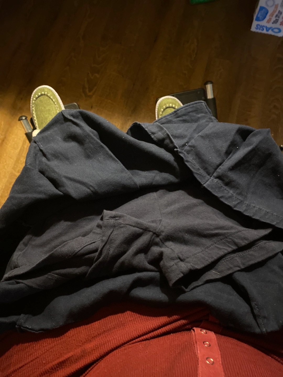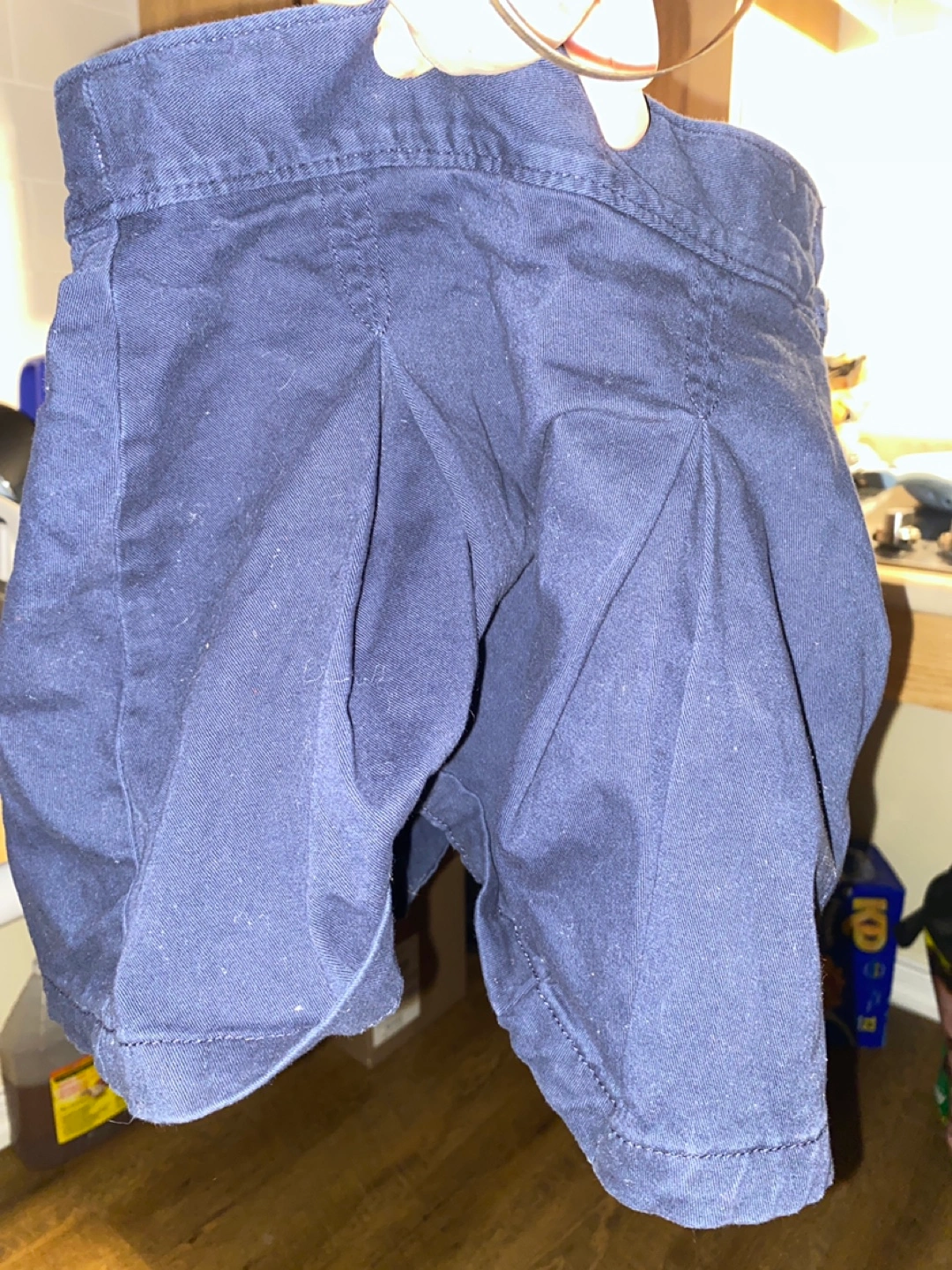 Dark navy blue shorts. Pleated front. Good used condition. Size 8. I paid $50 for the skirt and my daughter only wore it once.