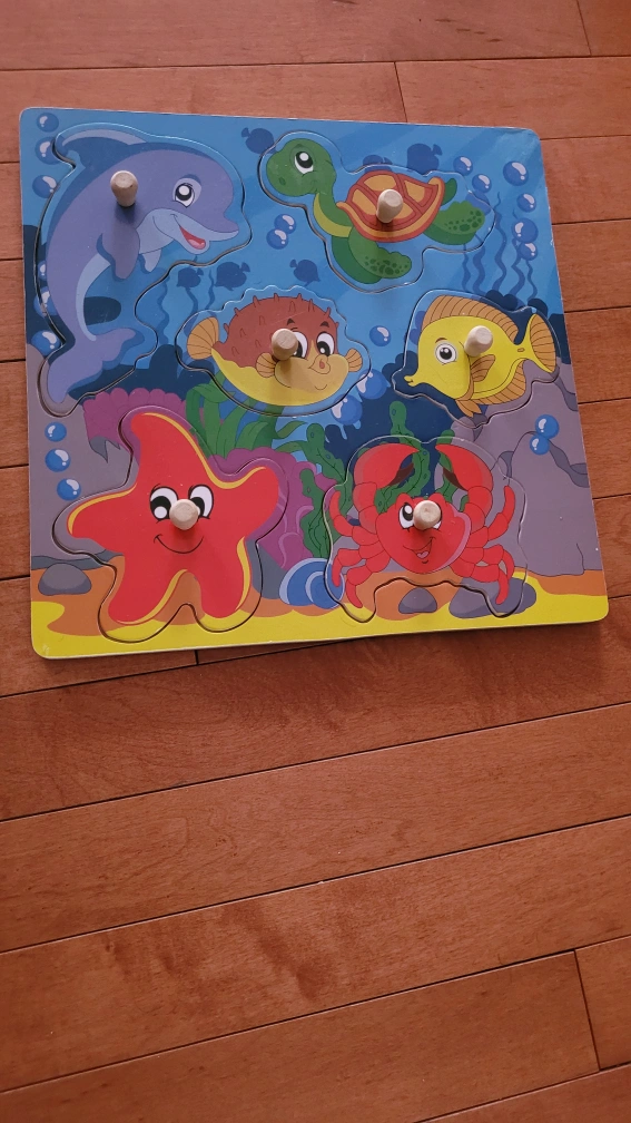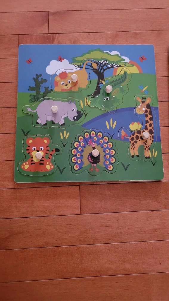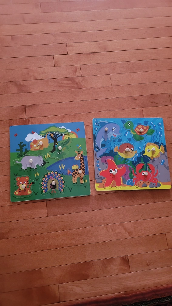 365Set of two wooden chunky puzzles. One features jungle animals, the other features ocean animals. Large pieces, easy for little hands. Perfect for toddlers.