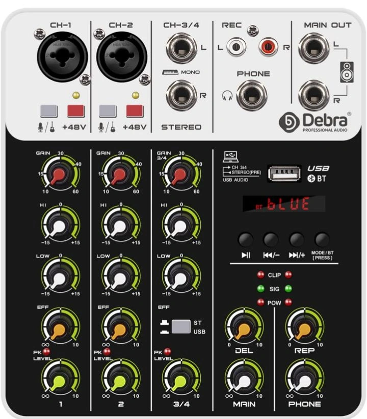 Debra V4 Professional Bluetooth Audio Mixer - USB Interface
