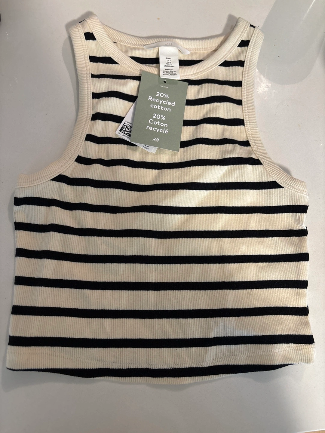83Cream and black striped tank top. Ribbed material. 20% recycled cotton. Small size. Original price : $14.99 Meet at Fraser & King Edward or Richmond Landsdown mrt