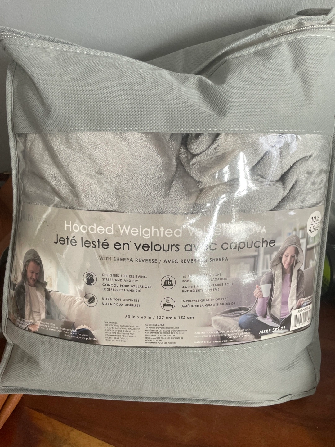 10 lb hooded weighted throw blanket.