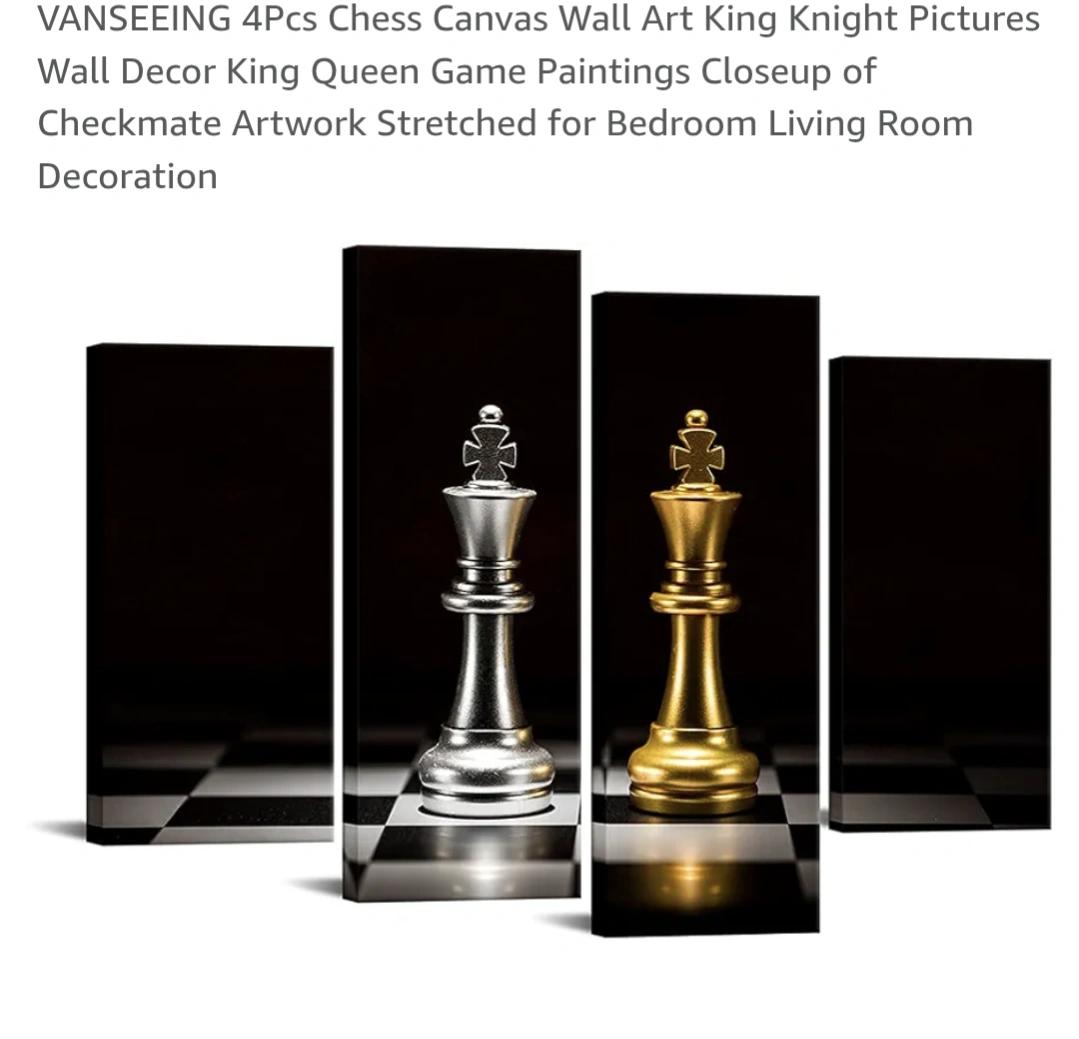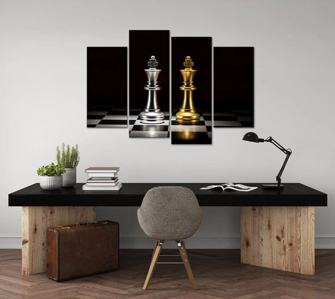 *NEW IN BOX* 4-Piece Canvas Chess King Wall Art