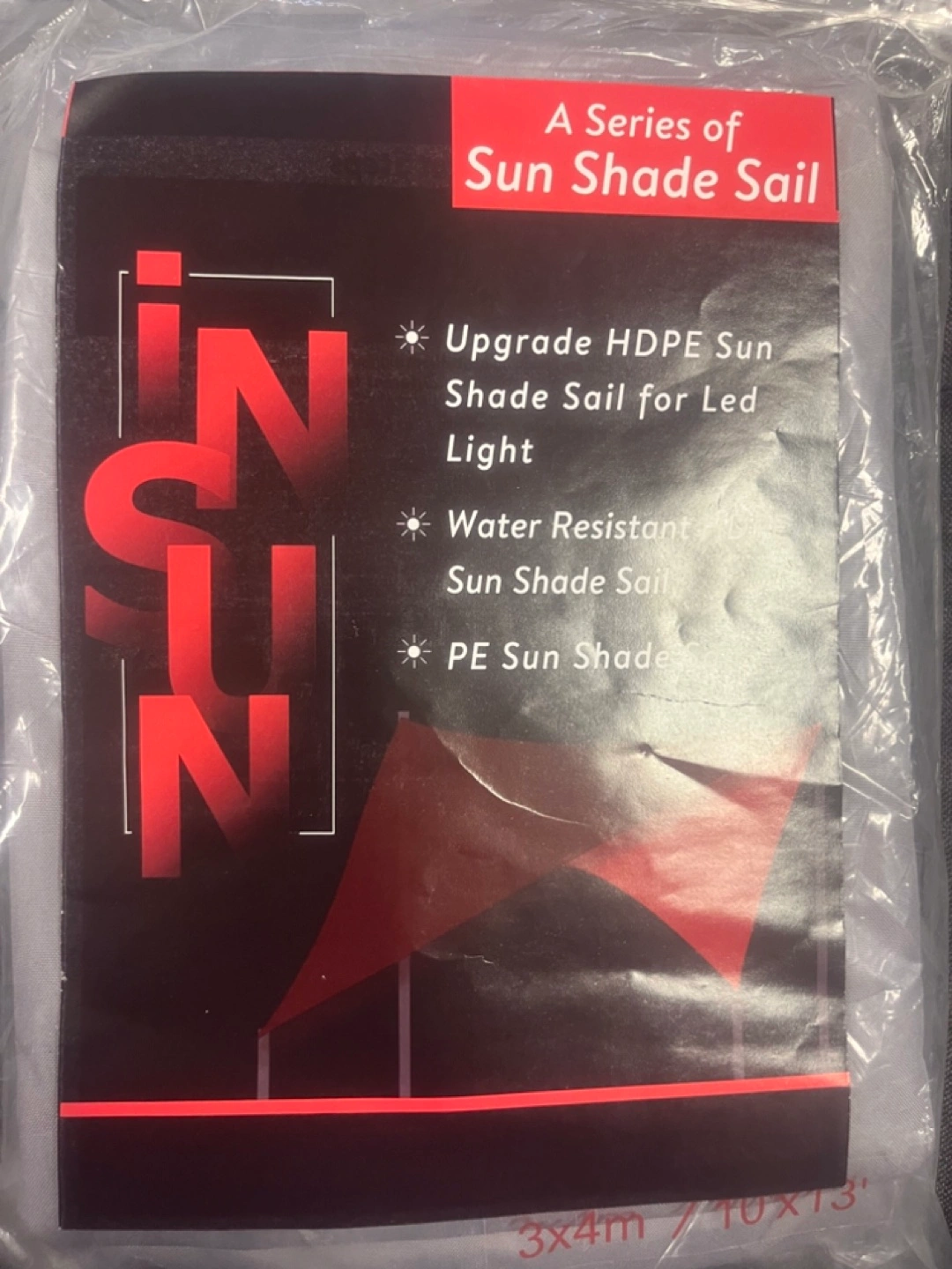 New sun shade sail. Upgrade HDPE material. LED light compatible. Water resistant. PE sun shade. 3x4 metre size.