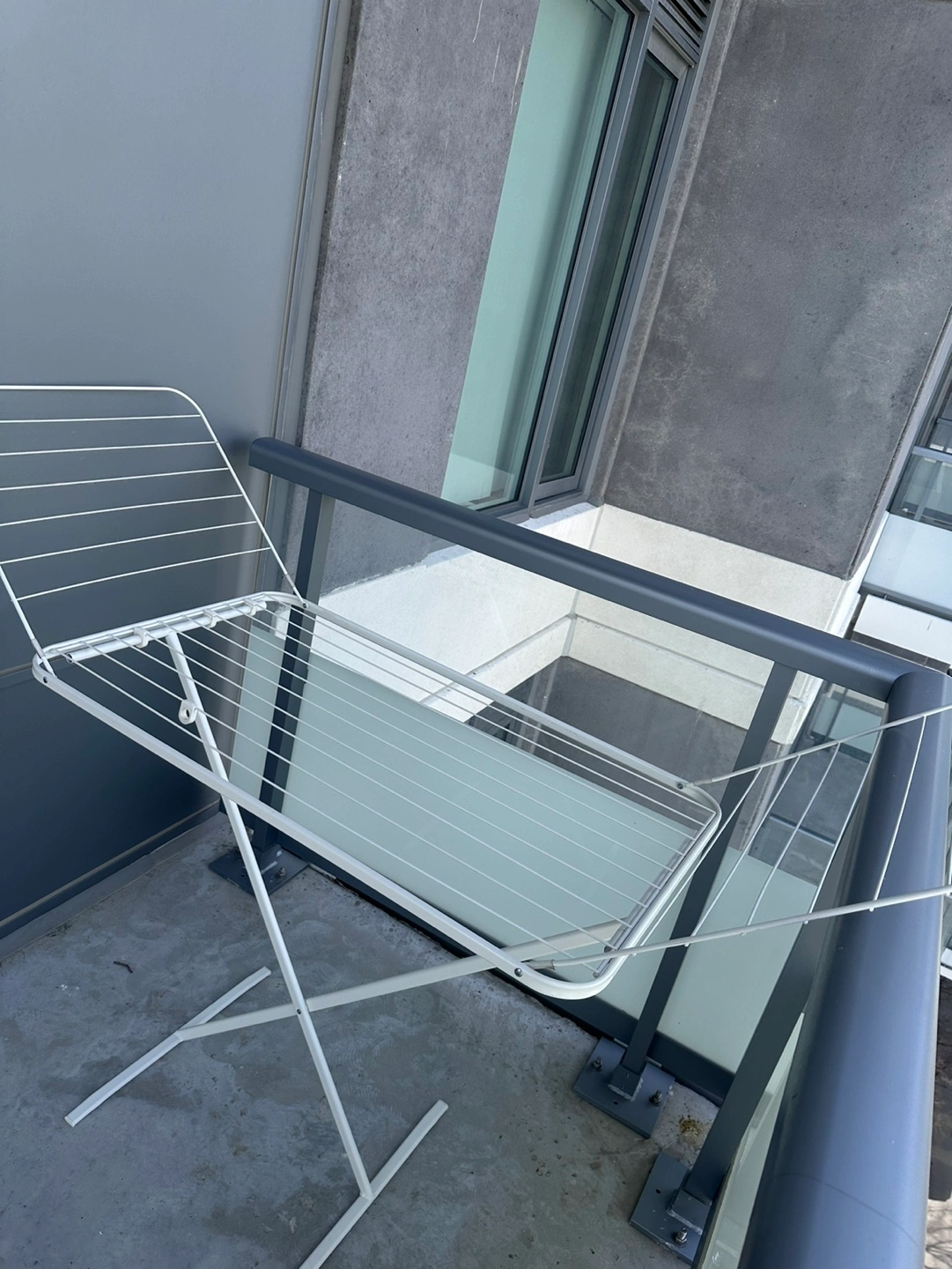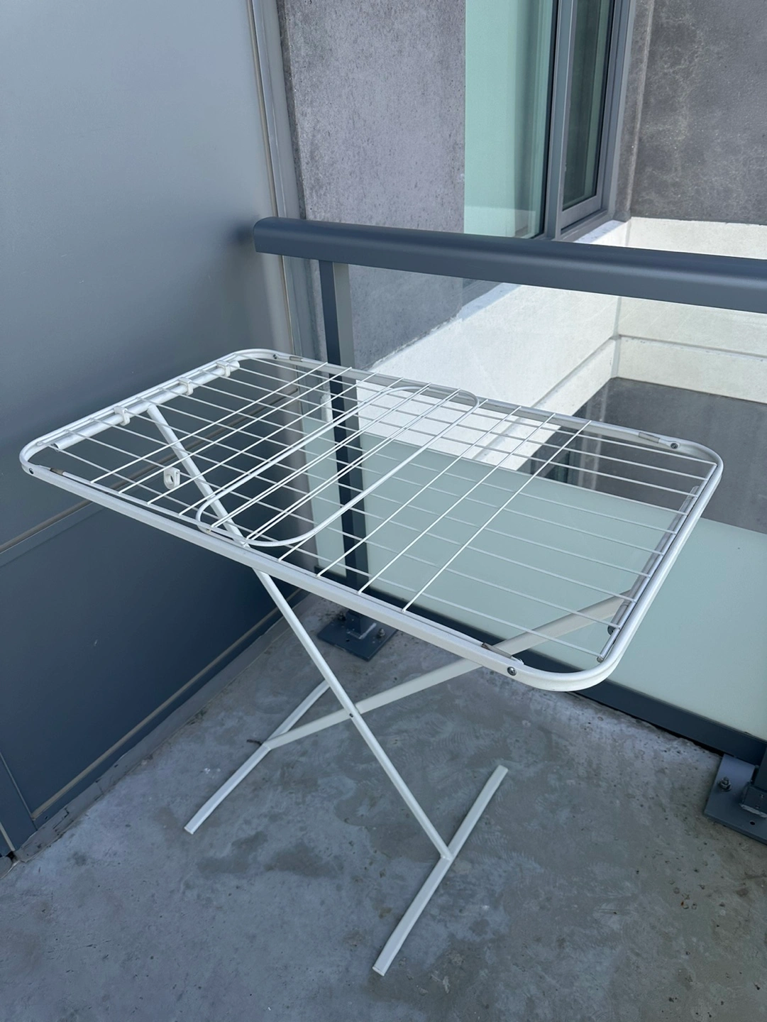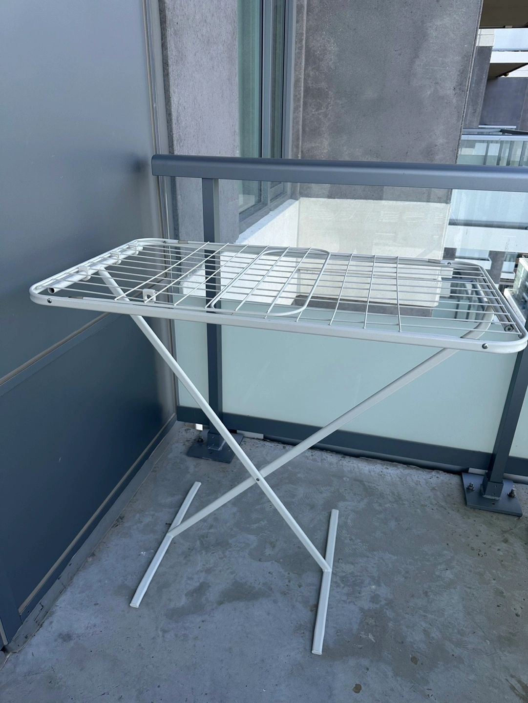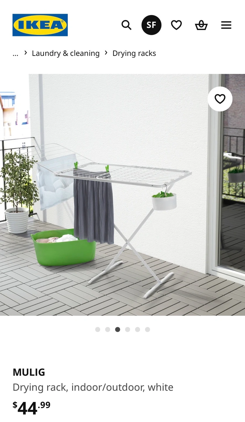 Ikea Indoor/outdoor drying rack. White metal frame. Great for small spaces can be fully foldable!