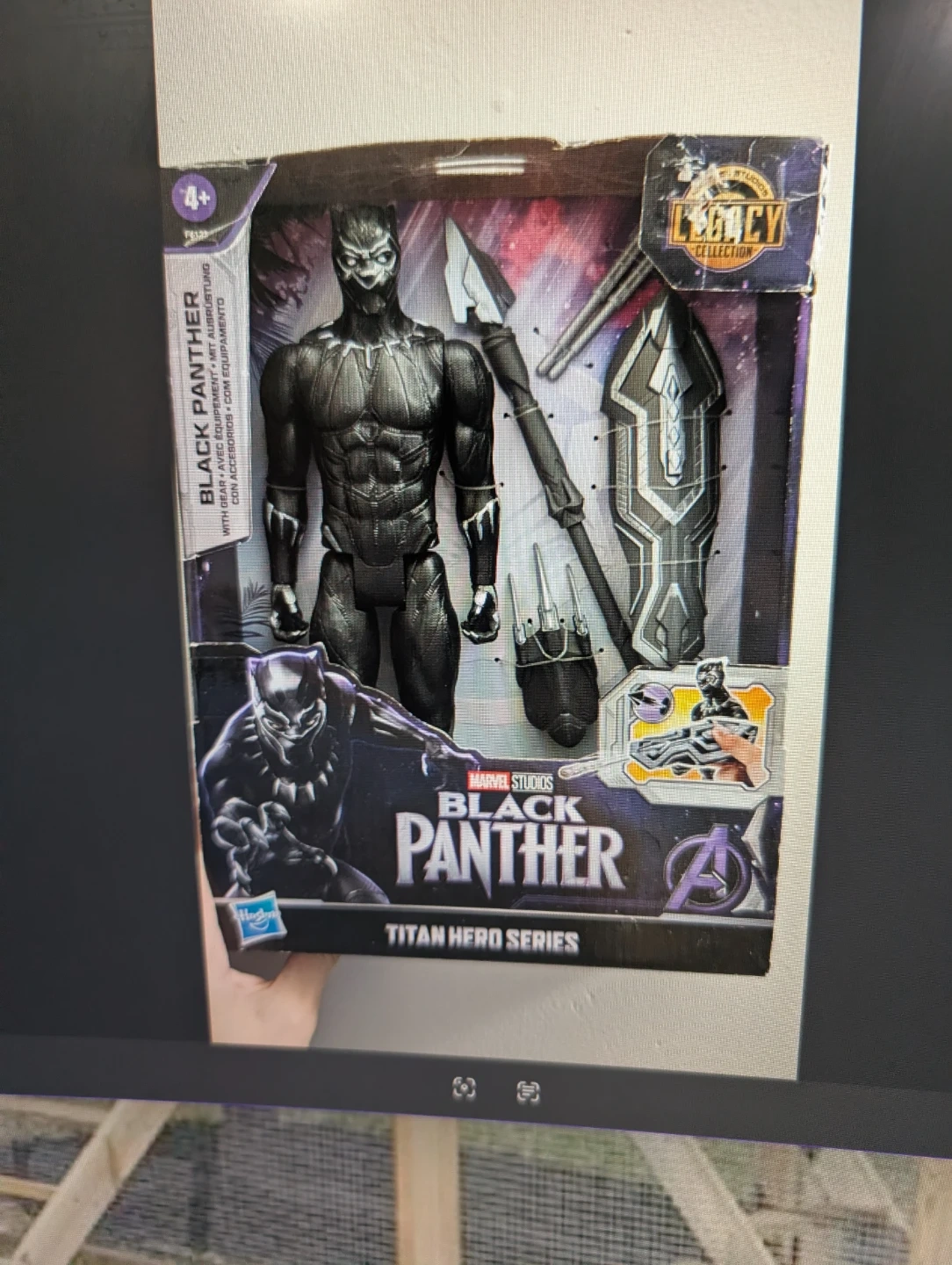 This Hasbro Black Panther action figure is from the Titan Hero Series. It comes with gear and accessories, including a shield and spear. Recommended for ages 4 and up.