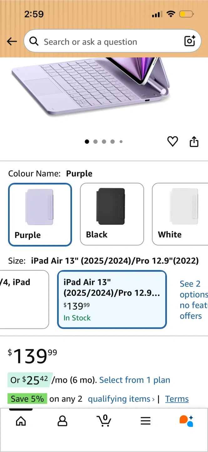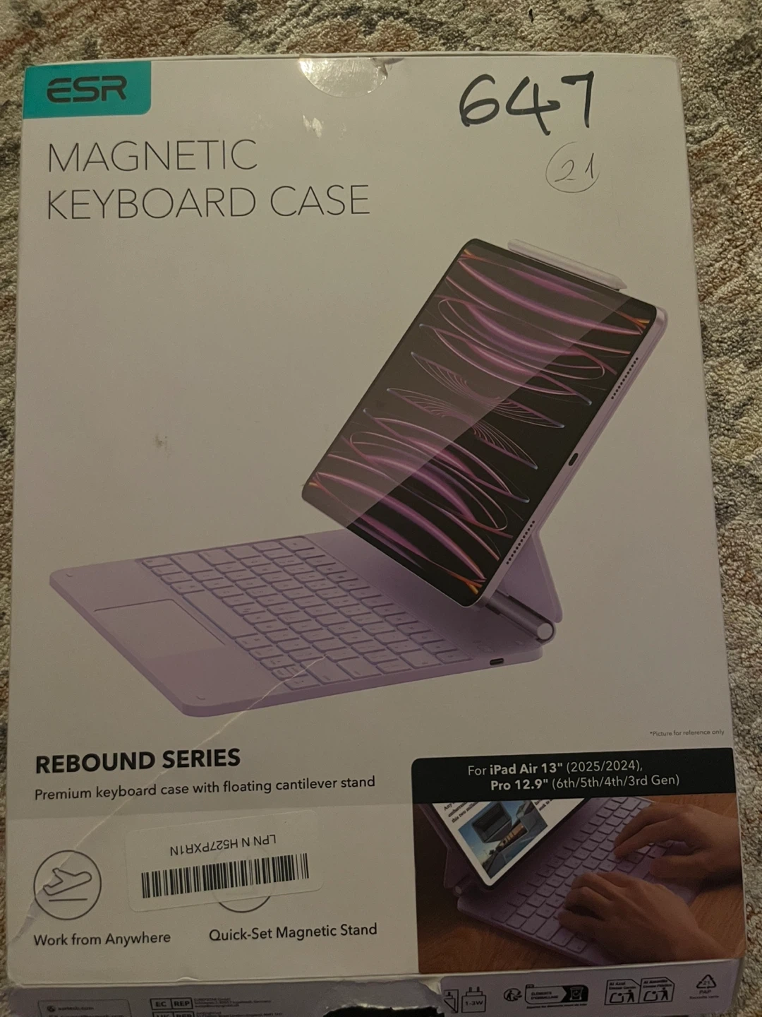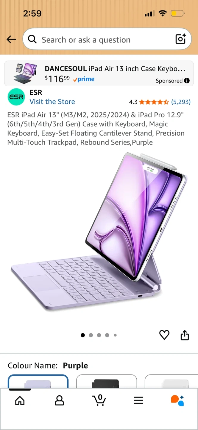 ESR Magnetic Keyboard Case in purple for iPad Air 13" (2025/2024) and iPad Pro 12.9" (6th/5th/4th/3rd Gen). It's a premium keyboard case with a floating cantilever stand and quick-set magnetic stand. Work from anywhere!