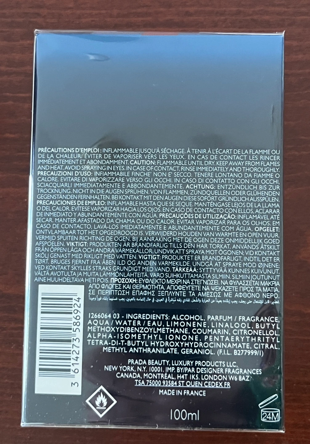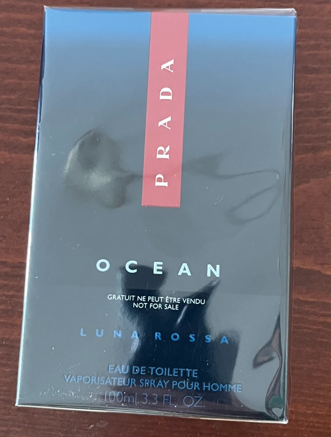 New 100ml bottle of Prada Luna Rossa Ocean Eau de Toilette for men. Sealed in plastic. Includes box.