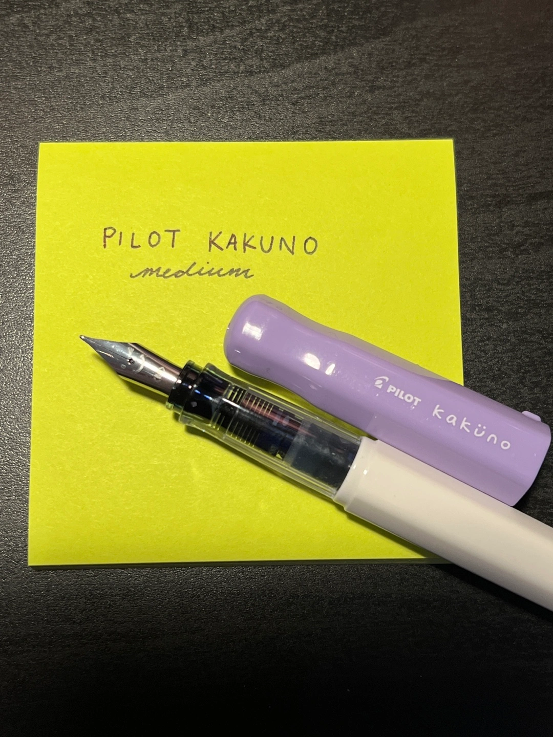 Pilot Kaküno fountain pen in Soft Violet, medium nib. Has a cartridge inserted, and 5 additional Pilot Namiki Blue cartridges will be included.