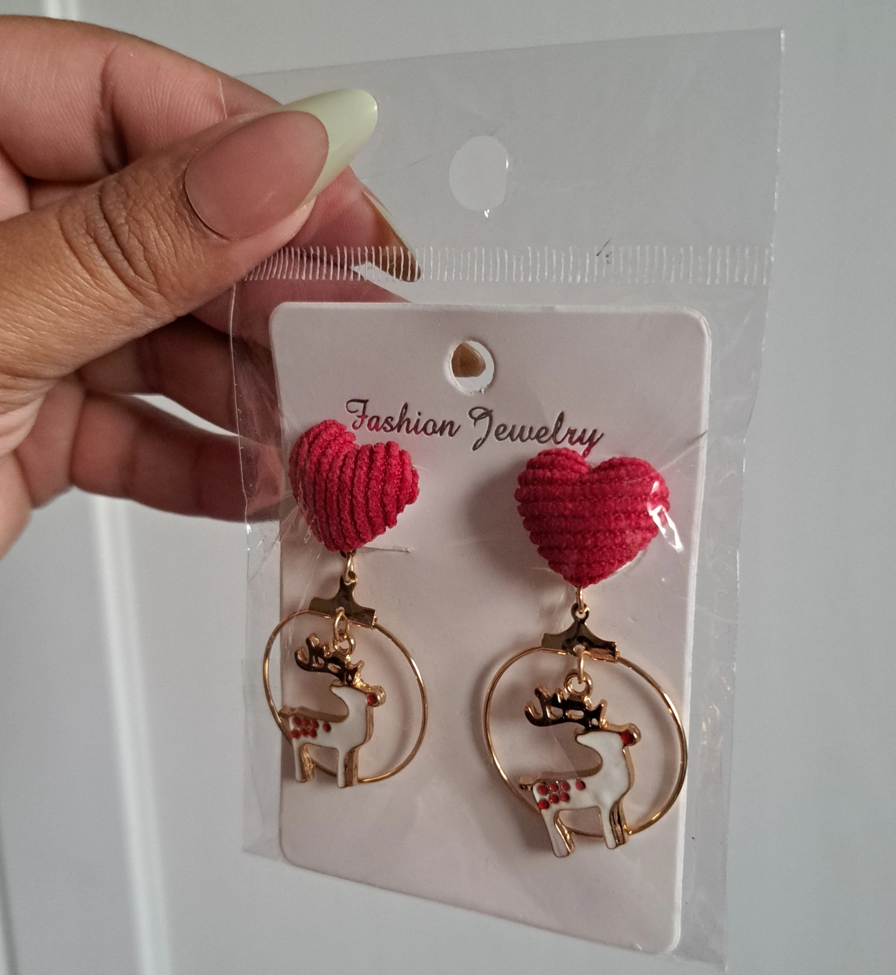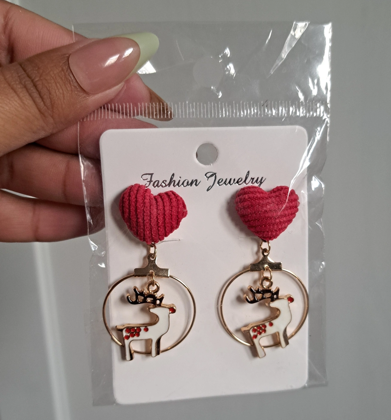 423Cute Christmas earrings. Red soft heart and gold reindeer accents. Lightweight and fun. Brand New! (Accepting CASH only)