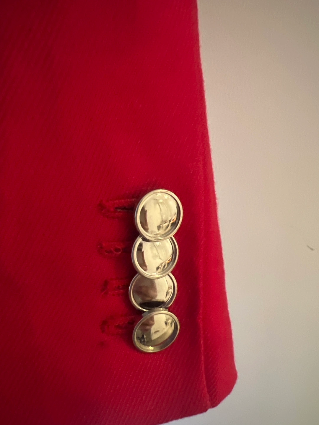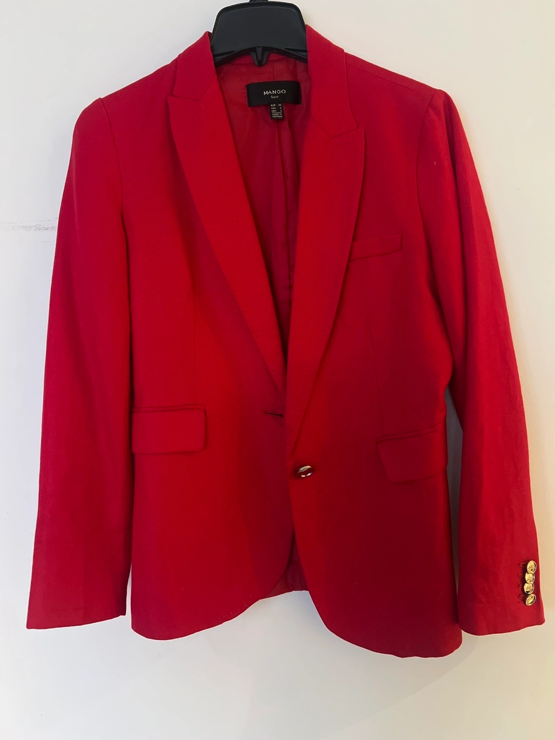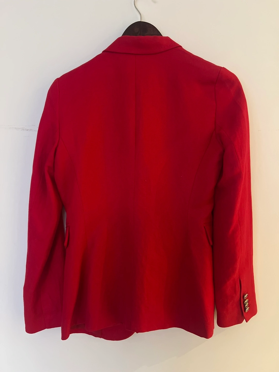 85Women's red blazer. Size 4. Silver buttons. Good condition. The colour in the picture looks brighter than the actual colour