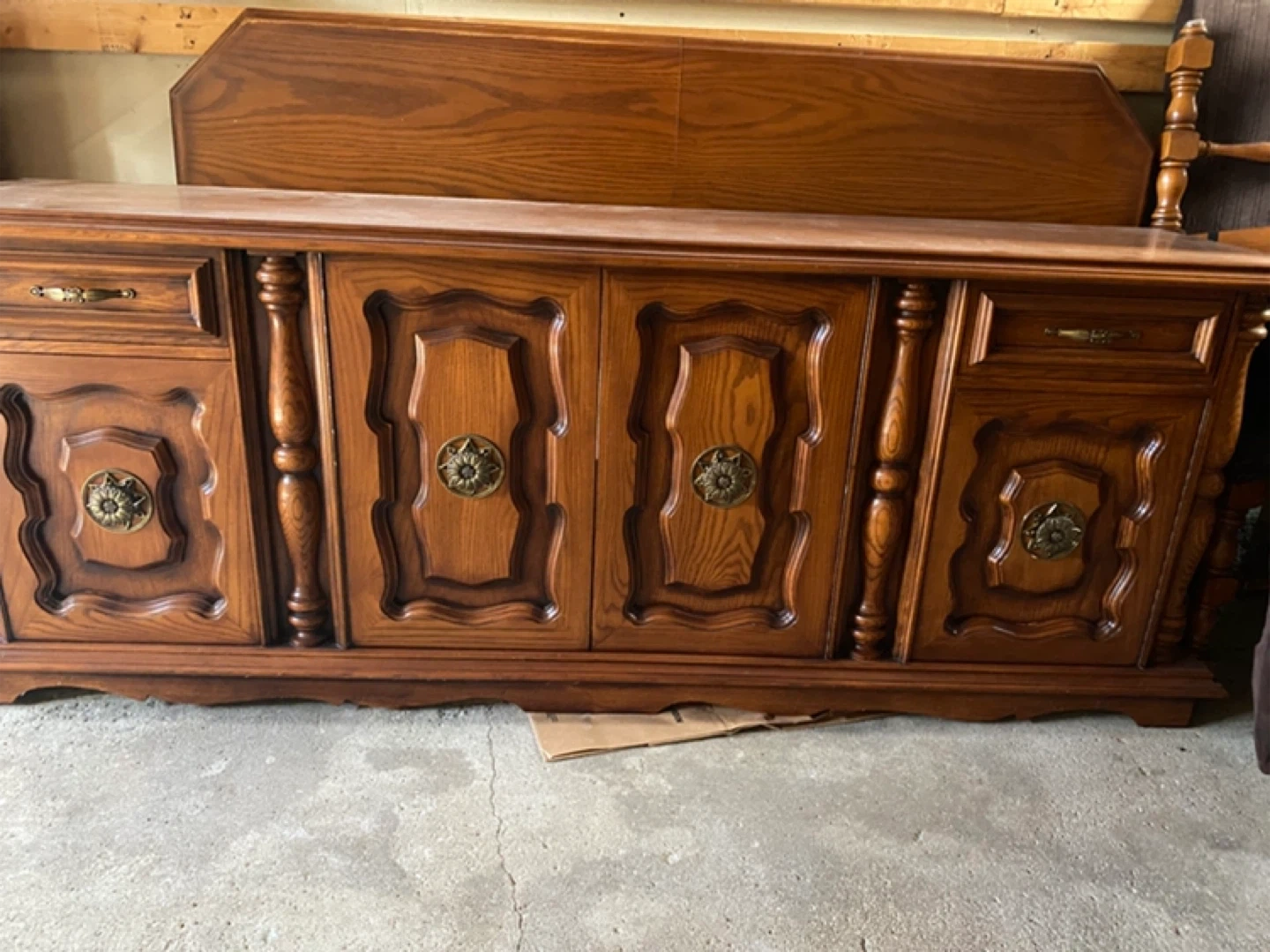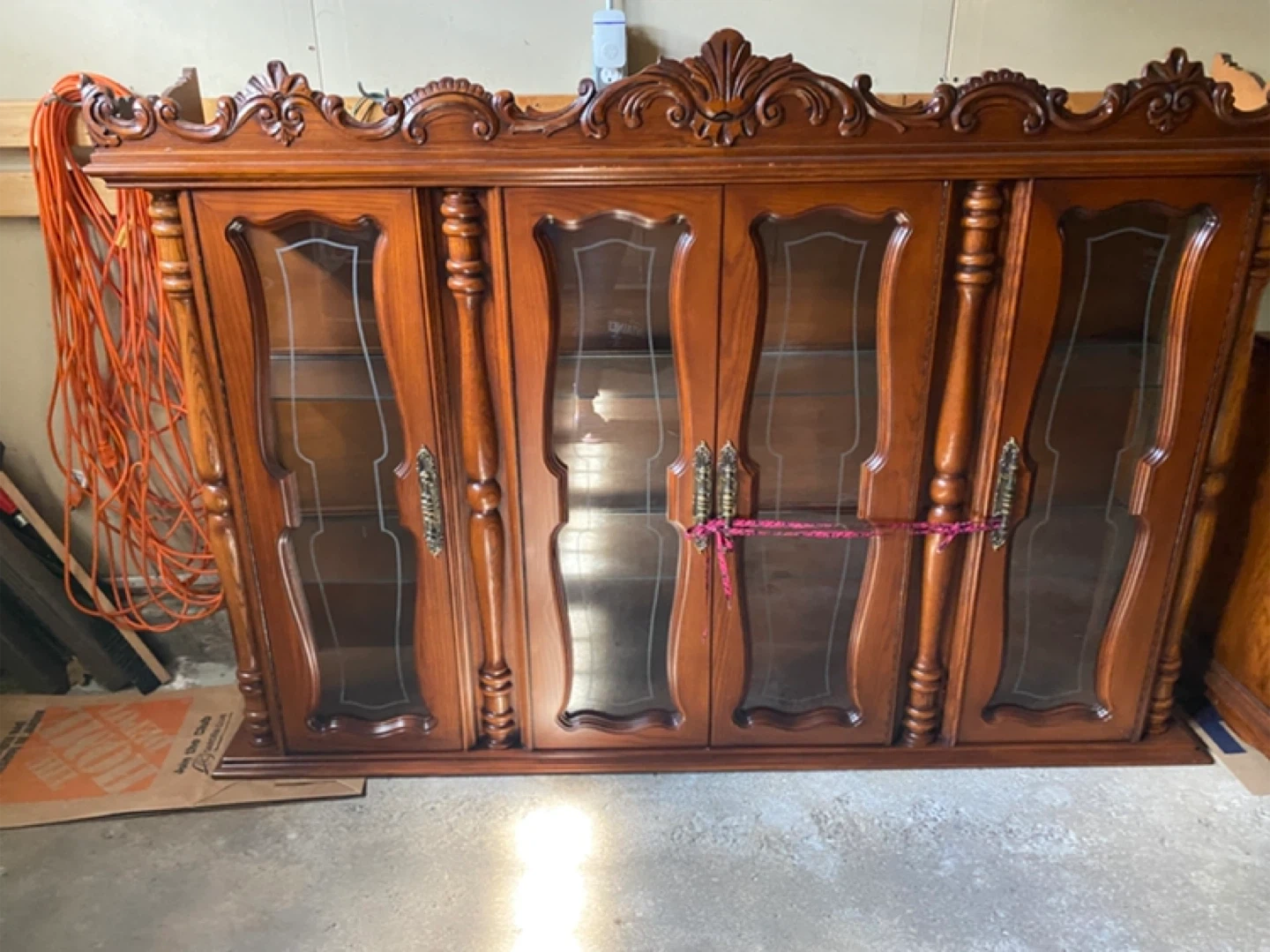 Large wooden china cabinet, features glass doors and multiple storage compartments. Size 82” length by 82” height. Very heavy. Two piece hutch due to it being solid wood. Need 2-3 strong people to move. You will need to pick up from Oakville.
