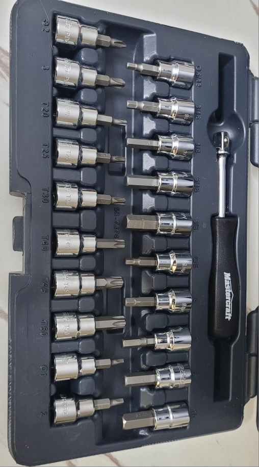 783Complete metric socket set. Includes various sizes and a ratcheting handle. Stored in a durable plastic carrying case. Great for mechanics or DIY enthusiasts.