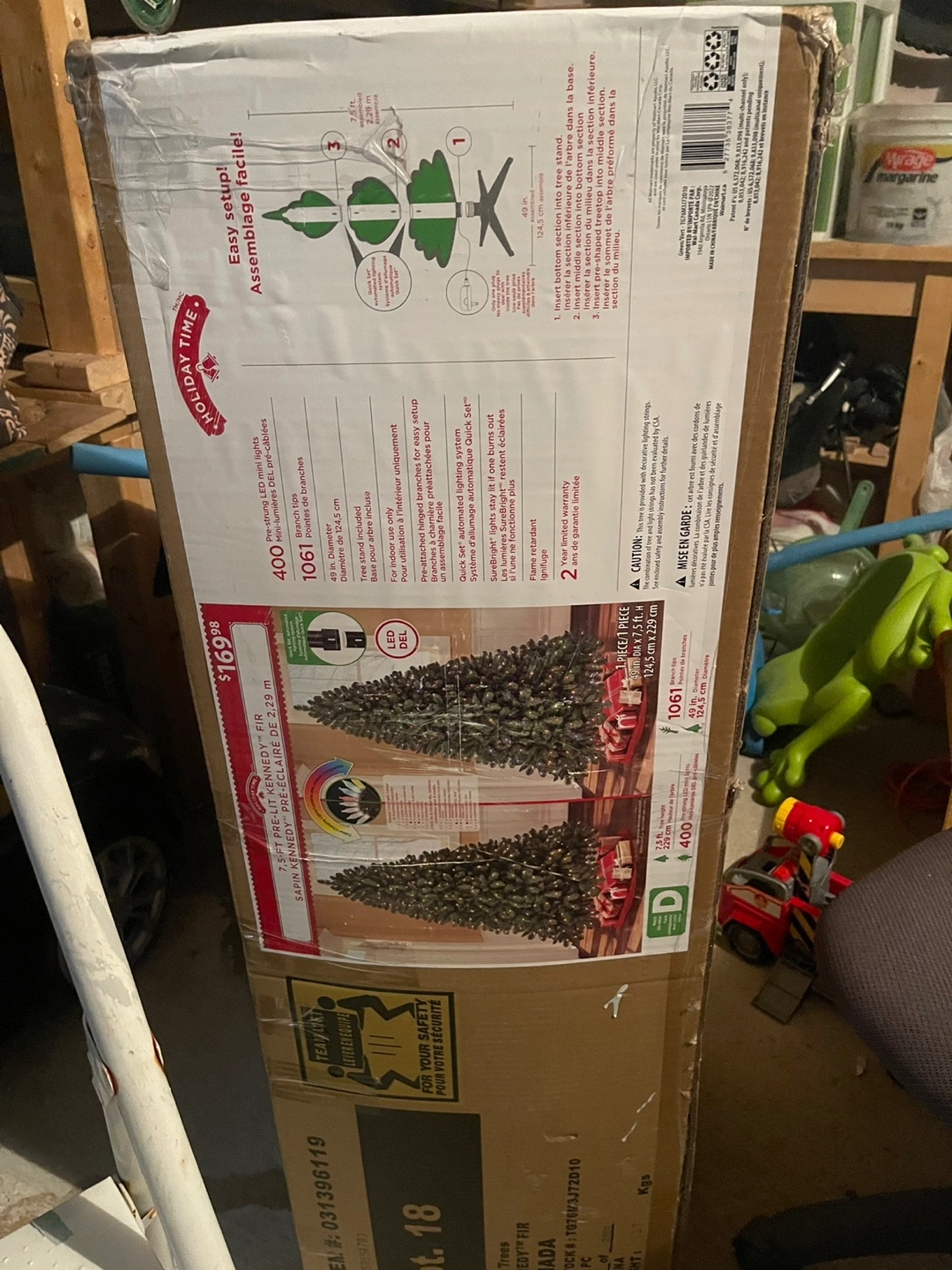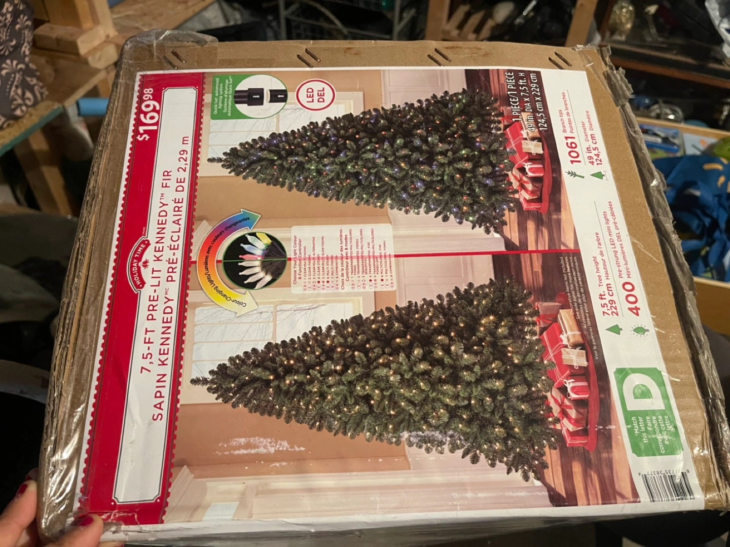 242Two 7.5-foot pre-lit artificial Christmas trees. LED lights. Easy setup. New in box.