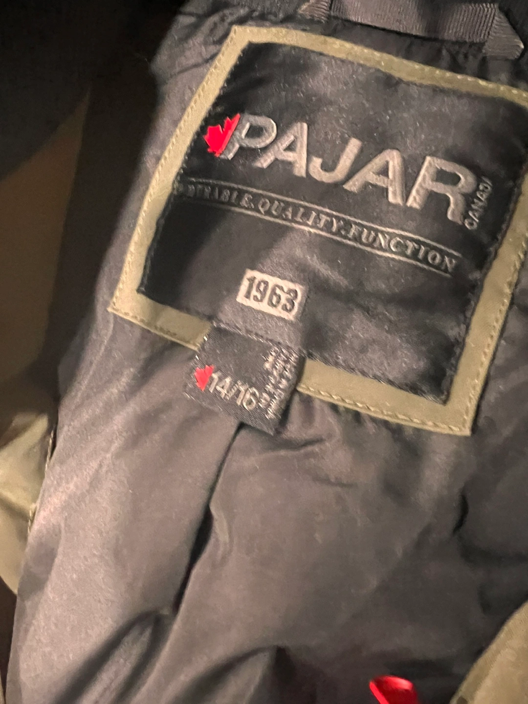 Pajar Kids Bomber Jacket - Size 14/16 - Olive Green