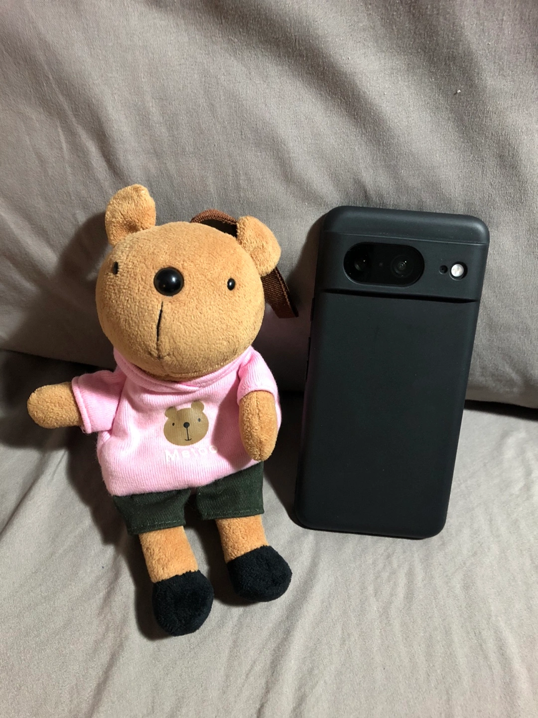 Adorable teddy with small pouch. Ideal for holding keys or small stuff. Phone NOT included.