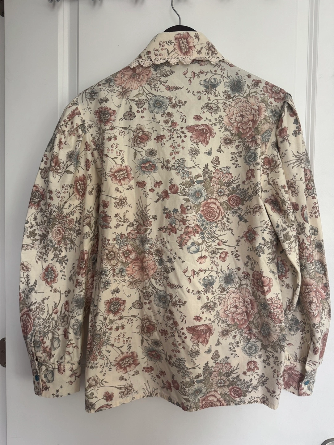 Long sleeve collared blouse with Floral print and lace collar detail. Perfect for spring fashion under a blazer or a dress! Cream base colour with lovely puff shoulder detailing. Size not listed but fits like a medium.